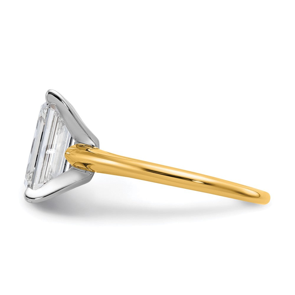 14K Two-Tone Gold Two-tone 3 carat Lab Grown Diamond VS+ F+ Emerald Solitaire Complete Engagement Ring
