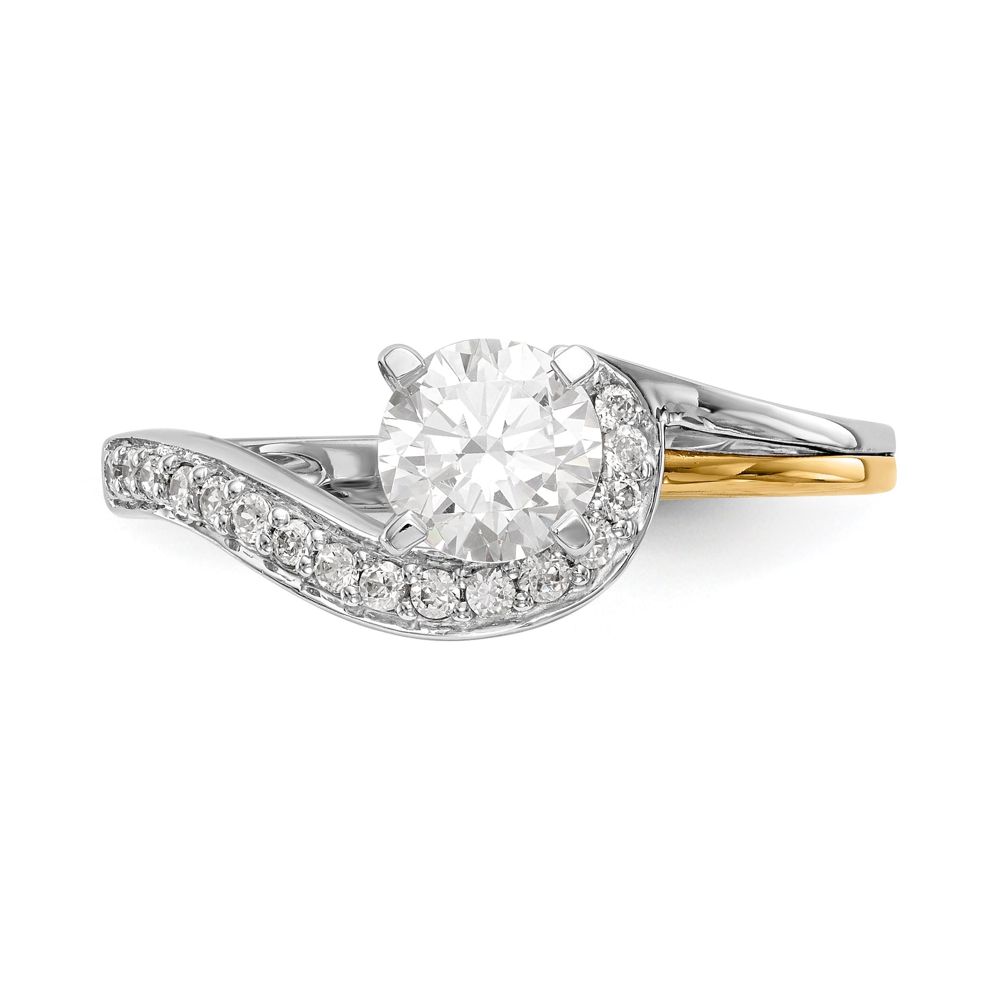 14k Two tone Peg Set Simulated Diamond By Pass Engagement Ring
