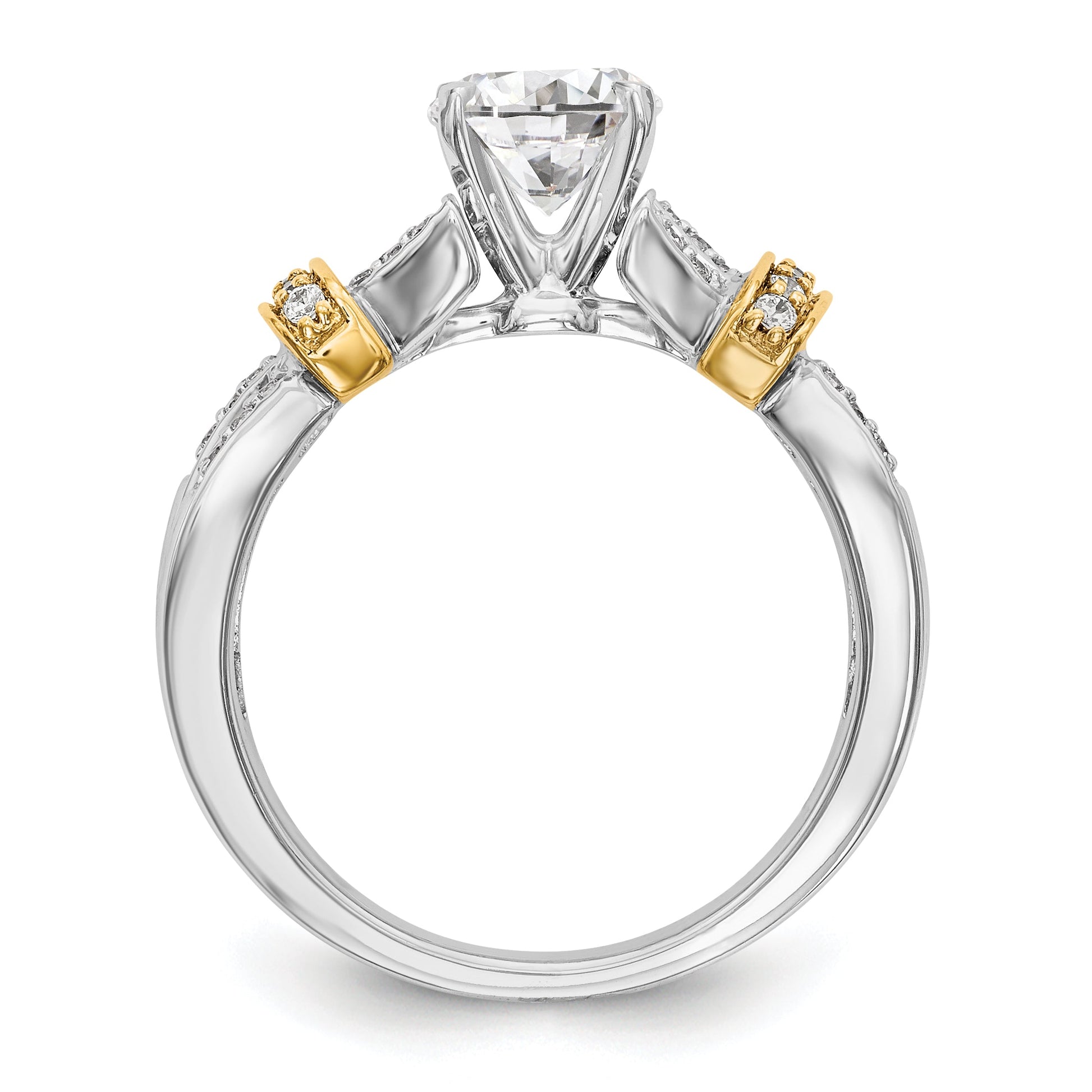 14k Two tone Peg Set Simulated Diamond Criss Cross Engagement Ring