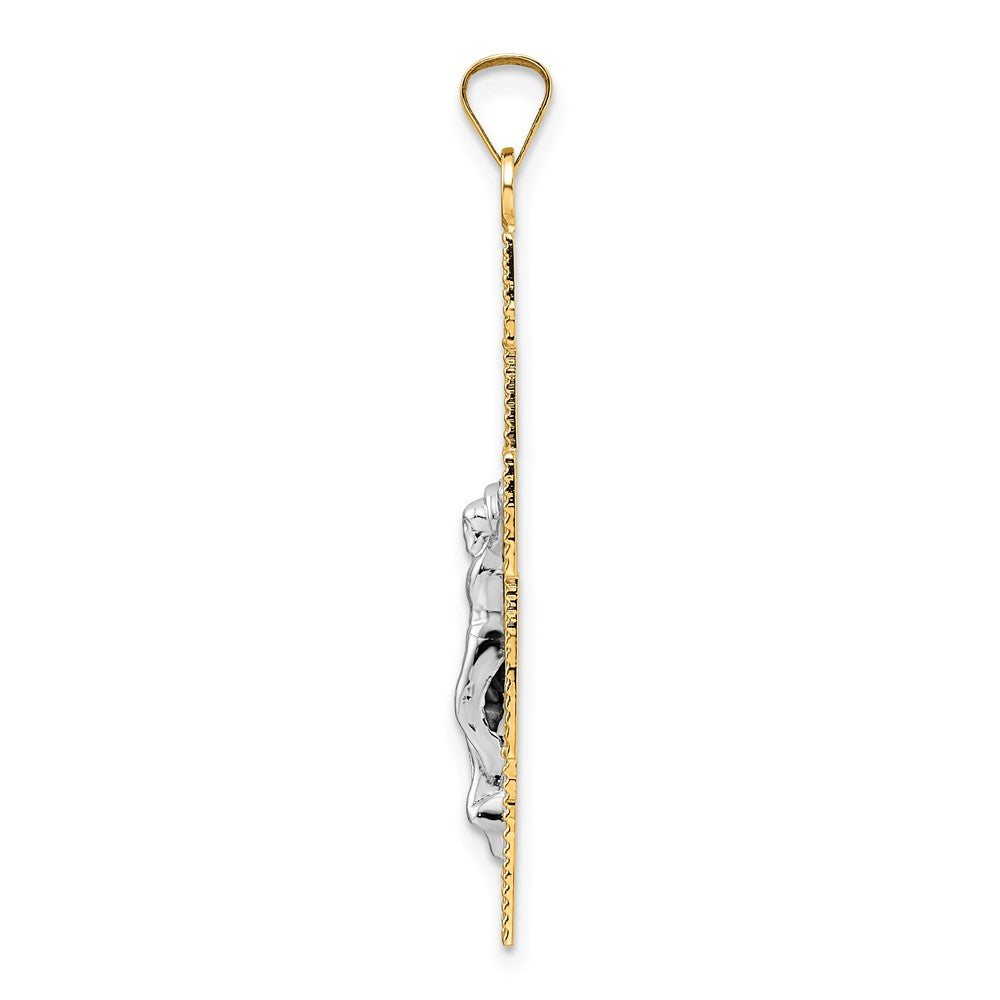 14k Two-tone Gold Polished Fancy Solid Cross Pendant