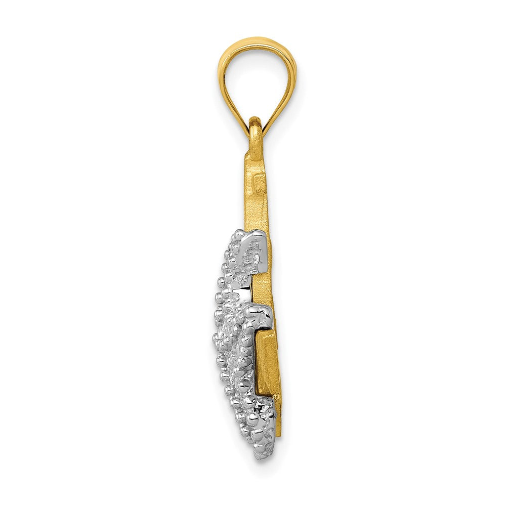 14k Two-tone Gold Two-tone Gold Solid Polished Diamond-cut Anchor with Starfish Pendant