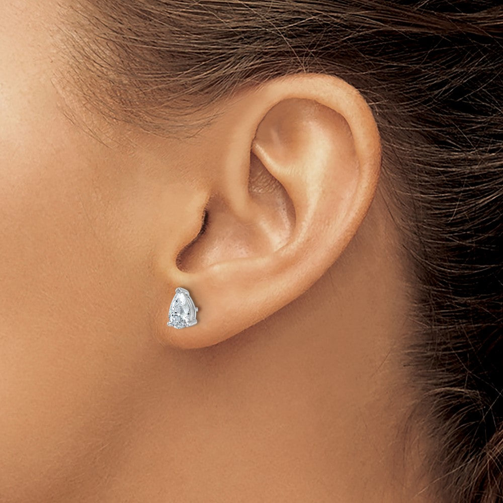 The 14K White Gold 1 1/2 Ctw Lab Grown Diamond Vs+ F+ Pear 4 Prong Heavy Wt. Stud Earrings are a true statement of style. Crafted from pure 14K gold with a polished finish, these earrings showcase stunning lab-grown white diamonds with VS+ clarity and F+ color grade. Each pear-shaped stone measures 7.6x5 mm, offering a bright sparkle and elegant look. The sturdy 4-prong design secures the gems well, and the heavy weight ensures durability. Perfect for any occasion, the earrings feature a classic post and push back closure. The dazzling sparkle of the lab-grown diamonds makes the 14K White Gold 1 1/2 Ctw Lab Grown Diamond Vs+ F+ Pear 4 Prong Heavy Wt. Stud Earrings a must-have addition to your jewelry collection.