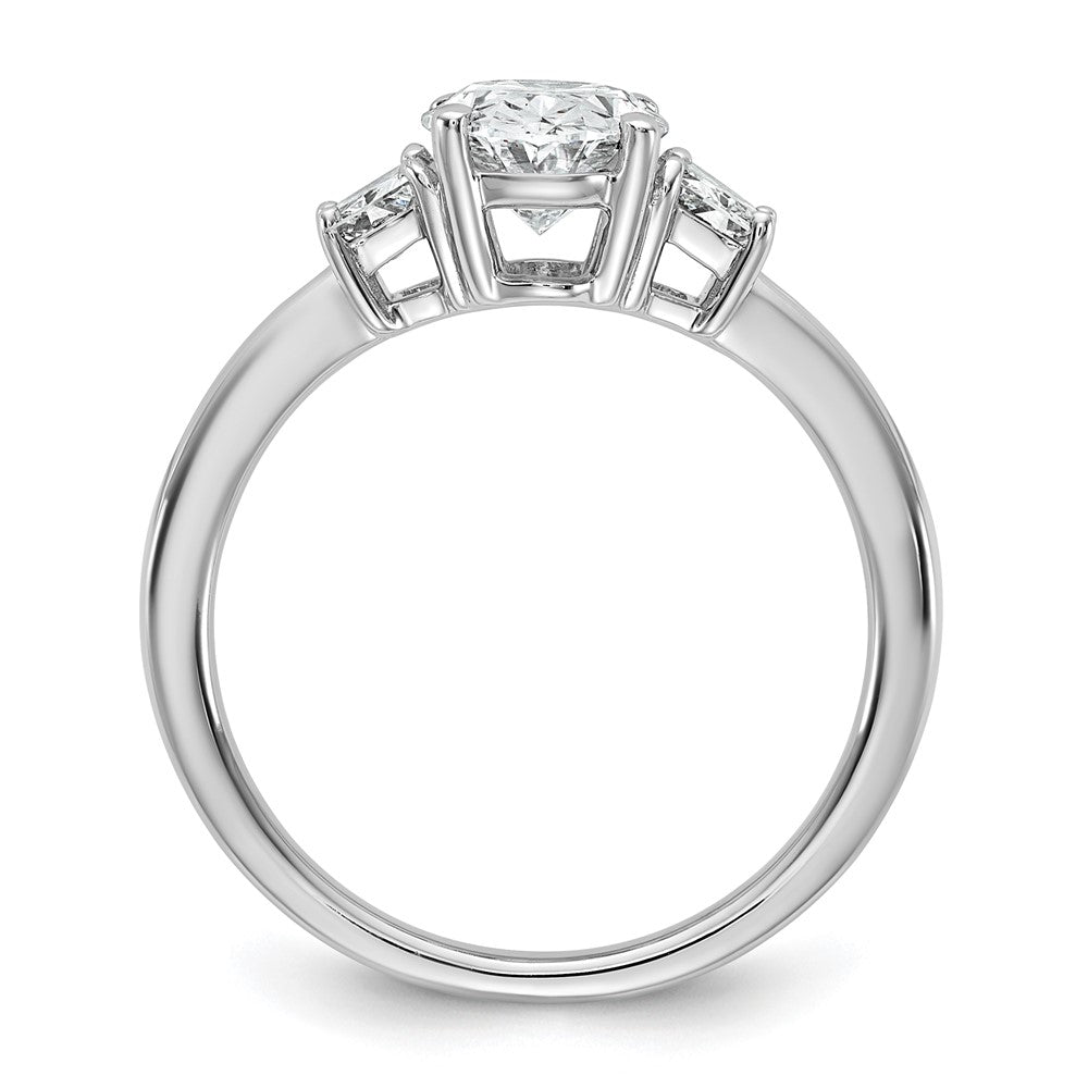 14K White Gold 1/2 carat Lab Grown Diamond VS+ F+ Trapezoid 1 1/2 carat Oval Semi Mount Three Stone Engagement Ring