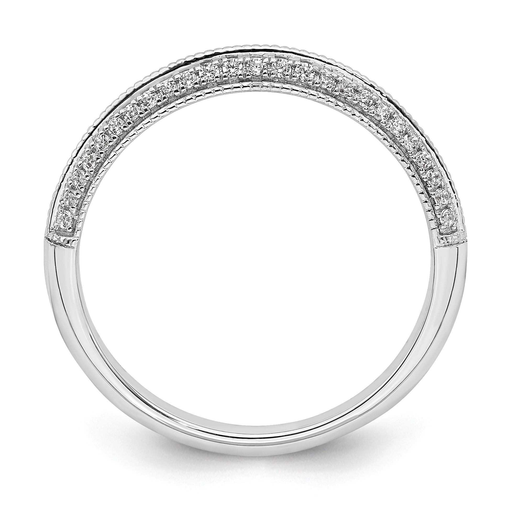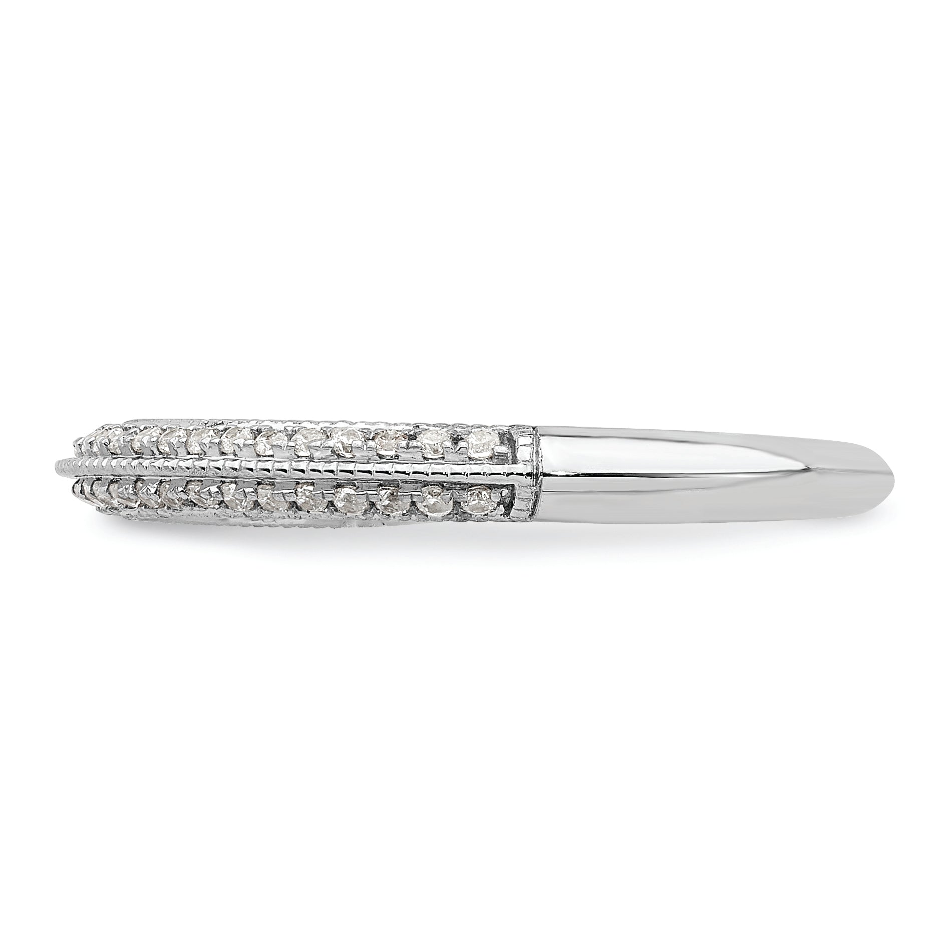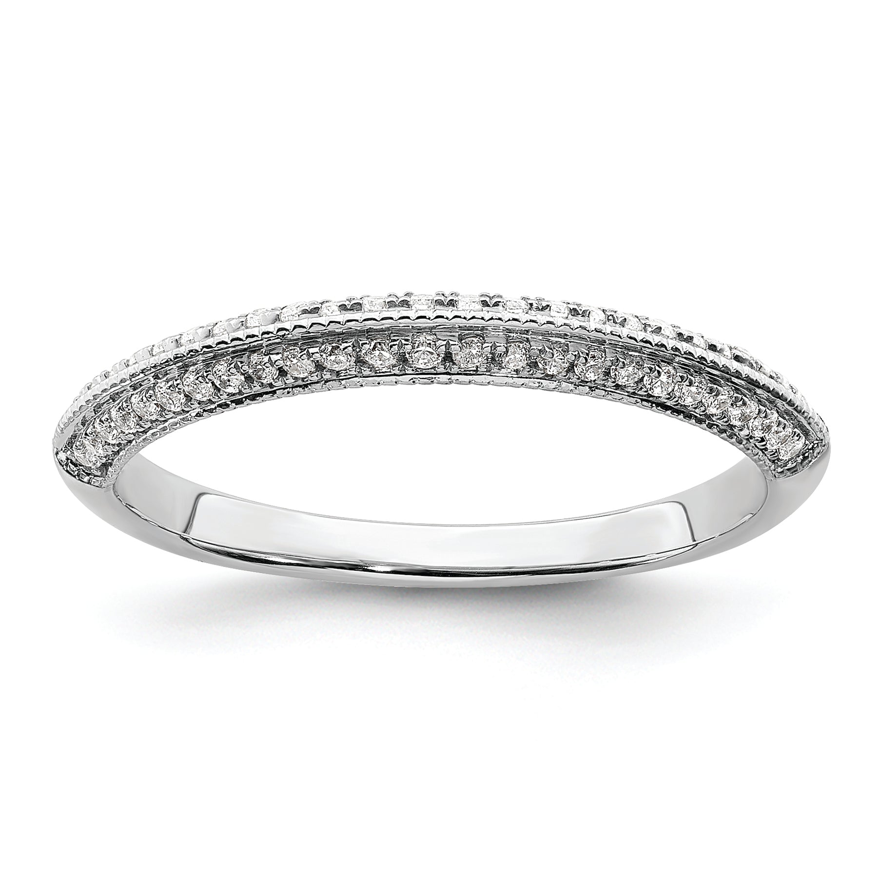 The 14K White Gold 1/5 Carat Diamond Complete Wedding Band is the perfect symbol of love. Made from pure 14K white gold, it features a polished finish and a sleek, tapered band that comfortably fits your finger. The ring showcases 50 round, natural diamonds set in prong settings, adding sparkle from every angle. Its solid design is crafted with care to last a lifetime. Whether for a wedding or special occasion, the 14K White Gold 14K 1/5 Carat Diamond Complete Wedding Band offers timeless style and quality you can trust.