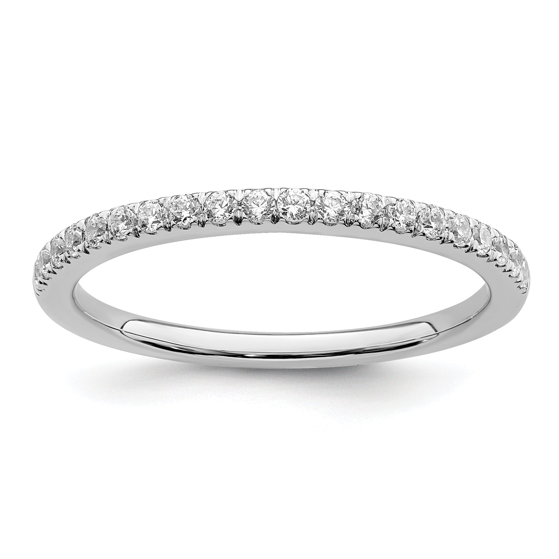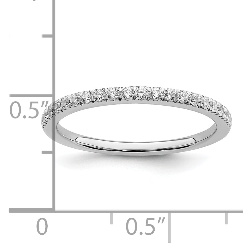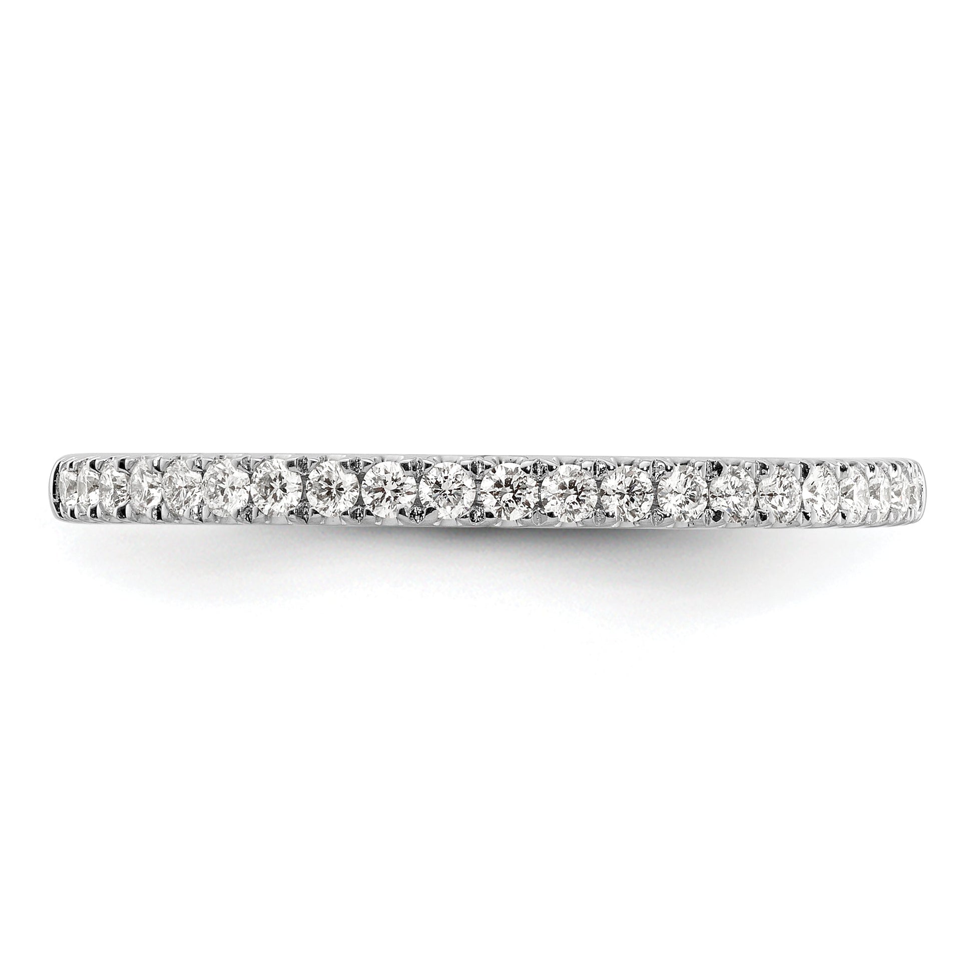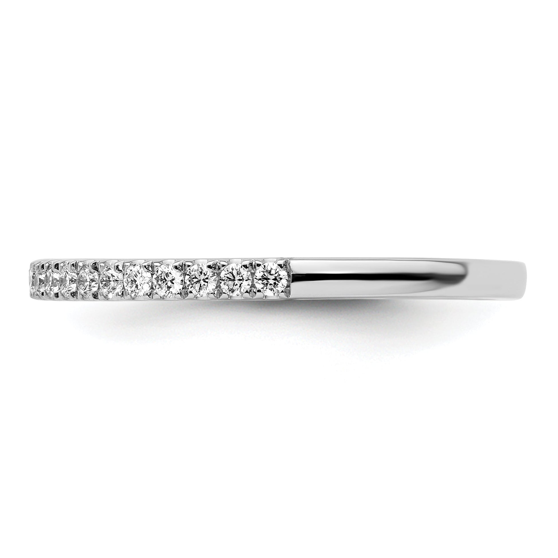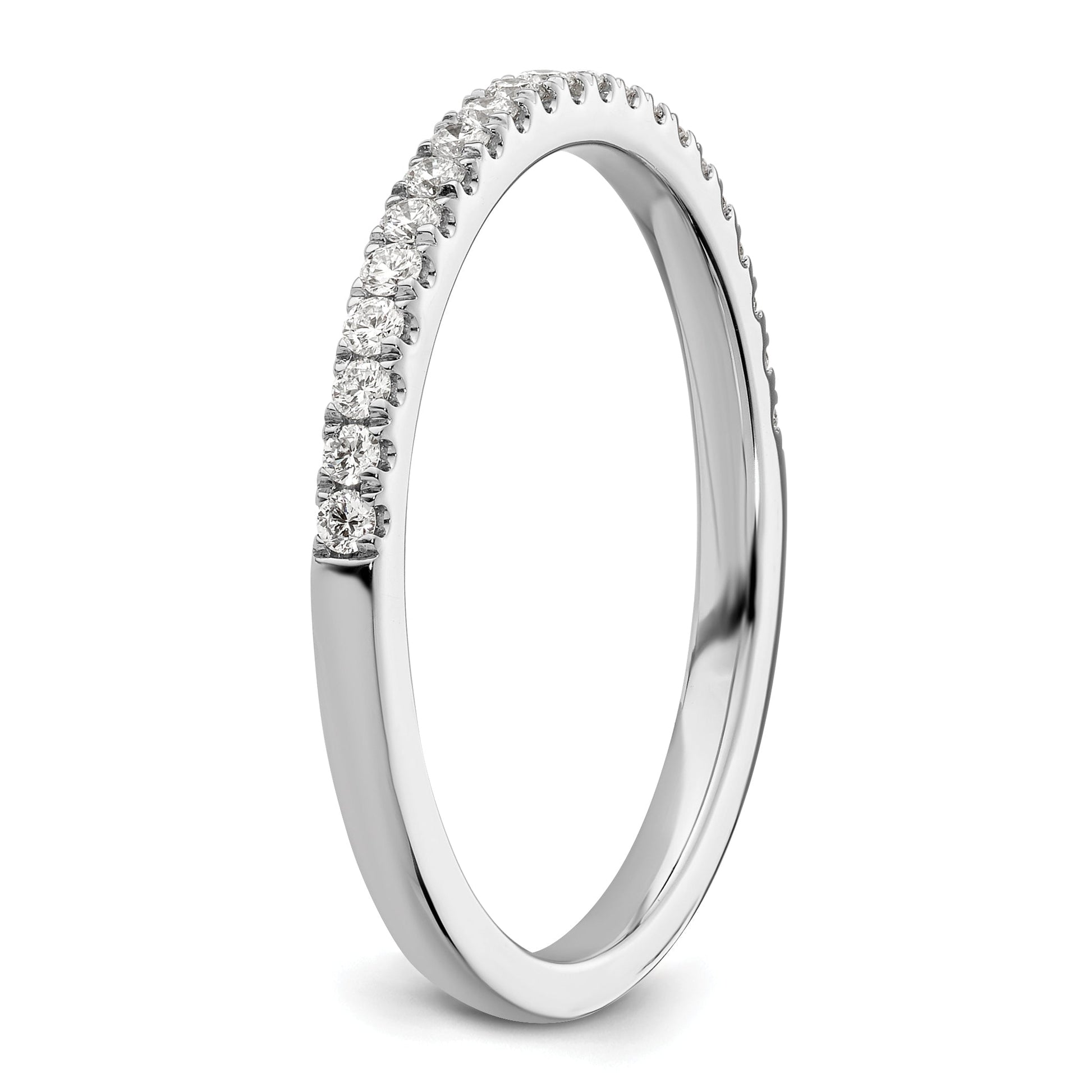 Celebrate love with the 14K White Gold 1/5 Carat Diamond Complete Wedding Band. Crafted from pure 14K gold and finished with a bright polish, this ring offers a sleek look. It features 21 sparkling round diamonds, each about 1.7 mm, set in a sturdy prong setting. The diamonds are natural and have I1 clarity. The band is slim at 1.6 mm wide, making it perfect for daily wear. With a solid design and closed back, the 14K White Gold 1/5 Carat Diamond Complete Wedding Band blends elegance and durability. This beautiful ring is ideal for women and makes a true symbol of your love.