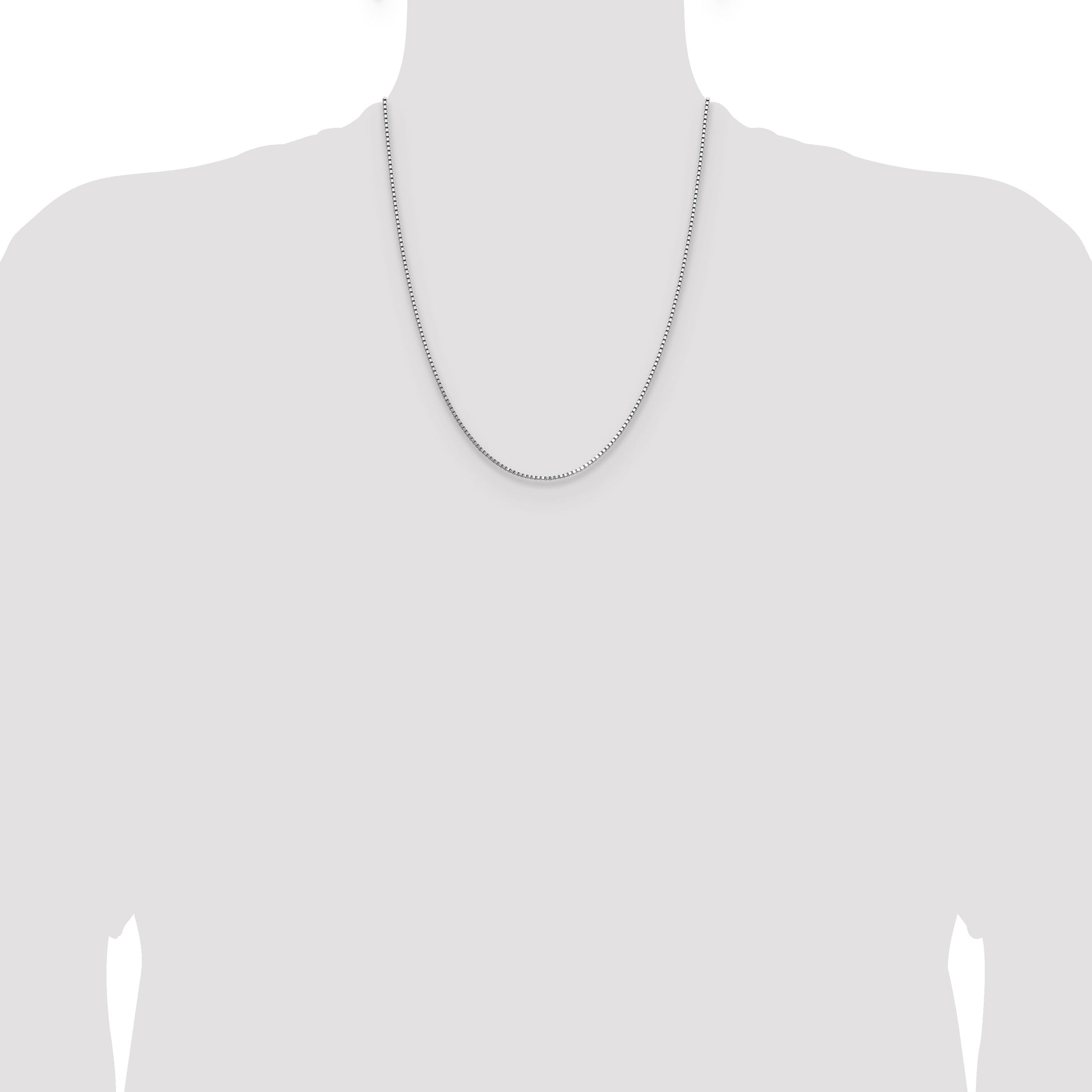 The 14K White Gold 14K 1.10mm Box Chain necklace stands out with its sleek, polished look. Made from solid 14K gold, this chain offers durability and timeless style. Its 22-inch length makes it perfect for layering or wearing alone. The box design ensures lightweight comfort, while the rhodium plating adds extra shine and protection. A sturdy lobster clasp keeps it secure, so you can wear it with confidence. Whether dressing up or down, the 14K White Gold 14K 1.10mm Box Chain adds a touch of elegance to any outfit. This piece also comes with a lifetime guarantee for peace of mind.