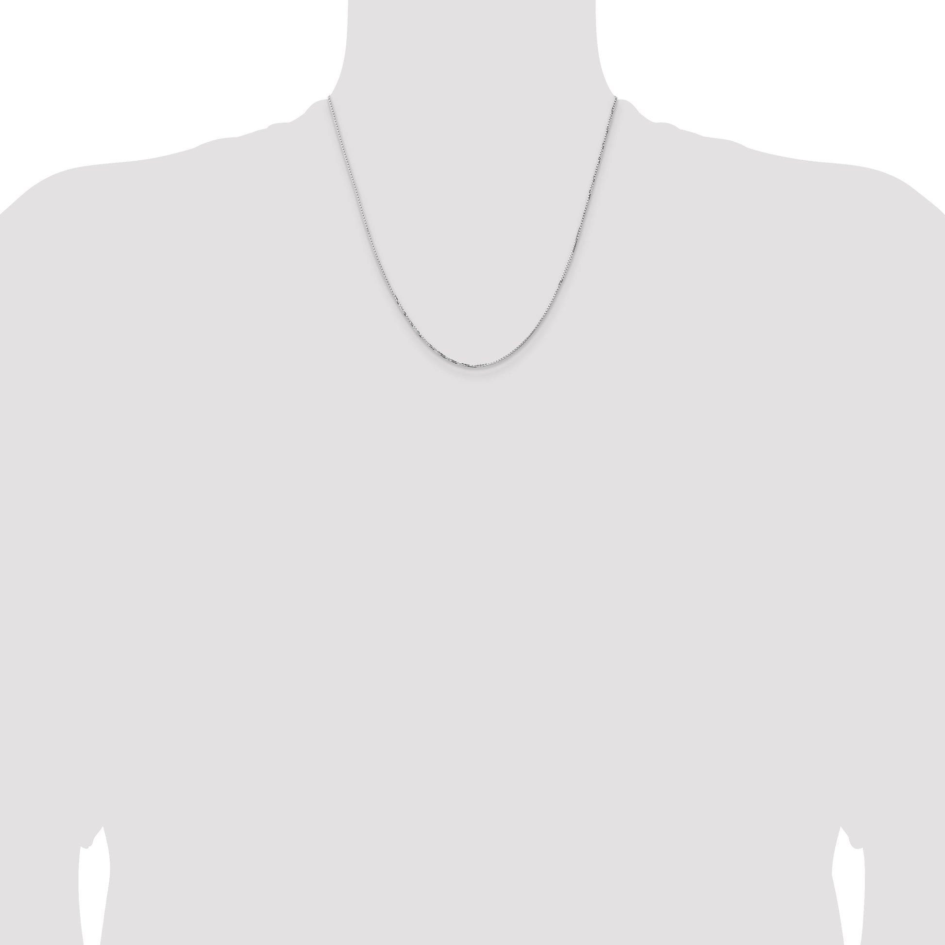 Discover the 14K White Gold 14K 1.10mm Concave Box Chain, a sleek piece perfect for everyday wear. Crafted from high-quality 14K white gold, it shines with a polished finish and features a durable rhodium coating. This 20-inch chain has a unique concave profile that catches the light in a stylish way. Its box design offers strength and flexibility, making it ideal for daily use. The lobster clasp ensures a secure fit, while the solid construction adds longevity. The 14K White Gold 14K Concave Box Chain comes with a lifetime warranty, making it a classic addition to any jewelry collection.