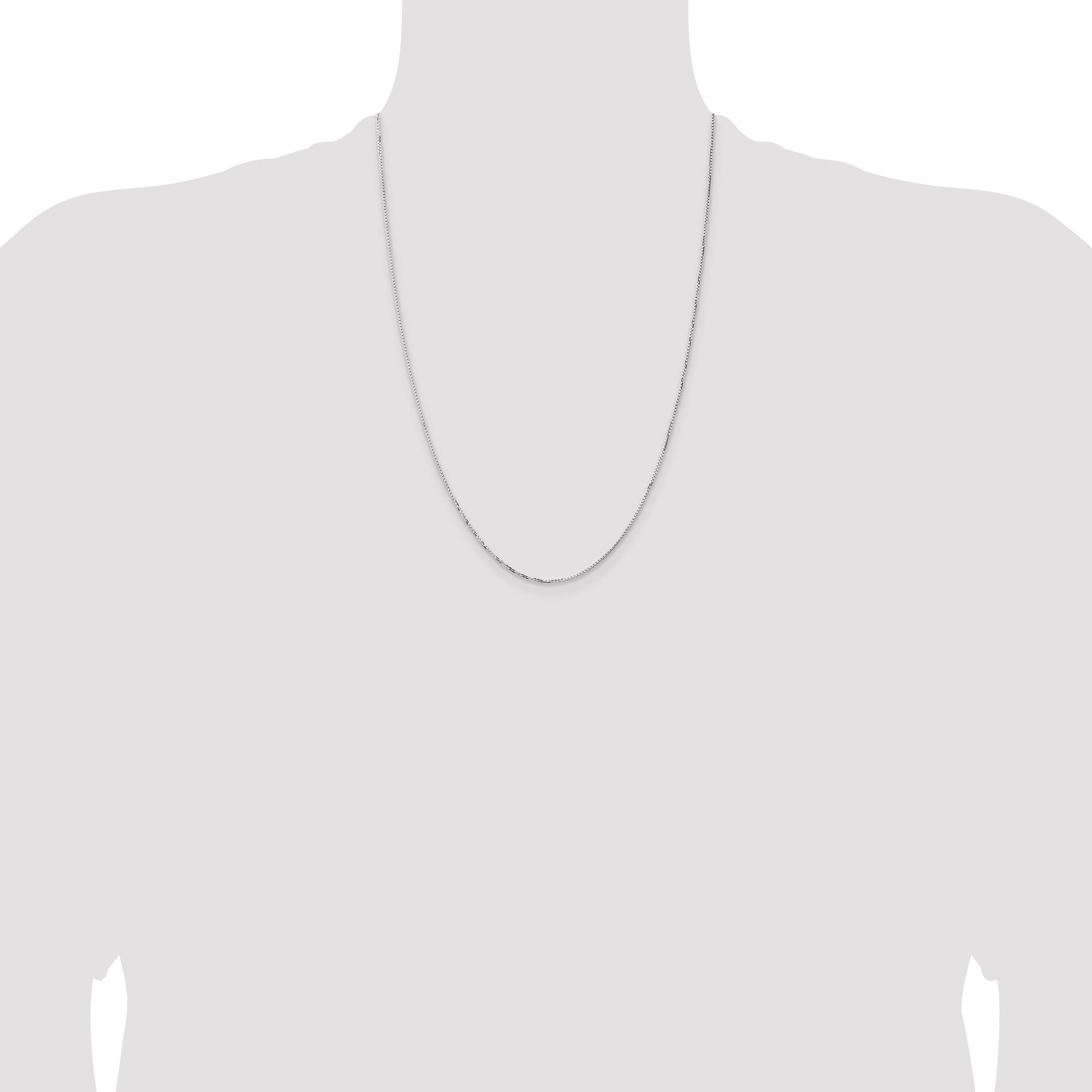 Discover the 14K White Gold 14K 1.10mm Concave Box Chain, a sleek and stylish piece that adds shine to any look. Crafted from pure 14K gold with a polished finish, this chain features a solid, durable design with a modern concave profile. The 24-inch length makes it perfect for layering or wearing alone, while the rhodium plating enhances its bright white color. The box chain style offers a smooth, elegant drape, and the lobster clasp ensures easy, secure wear. Built for longevity and style, the 14K White Gold 14K 1.10mm Concave Box Chain comes with a lifetime guarantee for peace of mind.