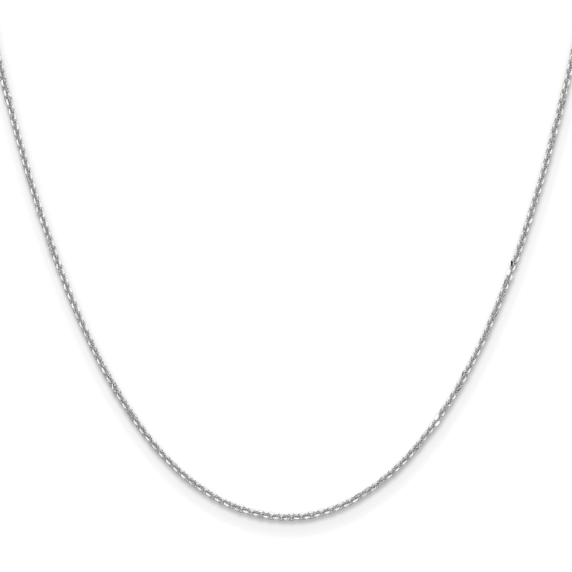 The 14K White Gold 14K 1.25mm D/C Round Cable Chain is a sleek, stylish necklace that adds elegance to any outfit. Made with high-quality 14K white gold and polished to shine, this chain offers durability and a refined look. Its 18-inch length and 1.25mm width make it versatile for daily wear and layering. The lobster clasp ensures a secure fit, while the rhodium plating boosts its shine and resistance. With a lifetime guarantee, the 14K White Gold 14K 1.25mm D/C Round Cable Chain is perfect for both casual and special occasions, providing lasting beauty and style.