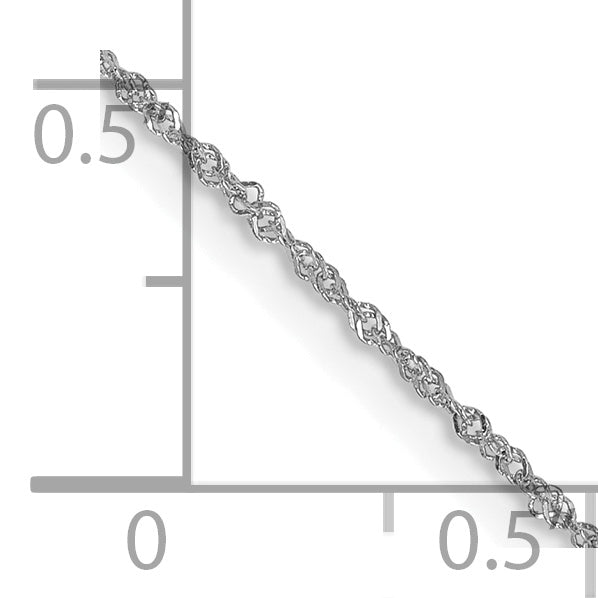 The 14K White Gold Singapore Chain offers a shining touch of elegance to any outfit. Crafted from pure 14K gold and polished with Rhodium plating, this 14-inch chain features a delicate 1mm width. The chain's Singapore design creates a dazzling twist, adding a splash of sparkle to your style. A sturdy spring ring clasp ensures a secure fit, letting you wear it with confidence throughout the day. Tailored for women who appreciate subtle yet stunning jewelry, the 14K White Gold 14 Inch 1mm Singapore Chain is a timeless accessory for any wardrobe.