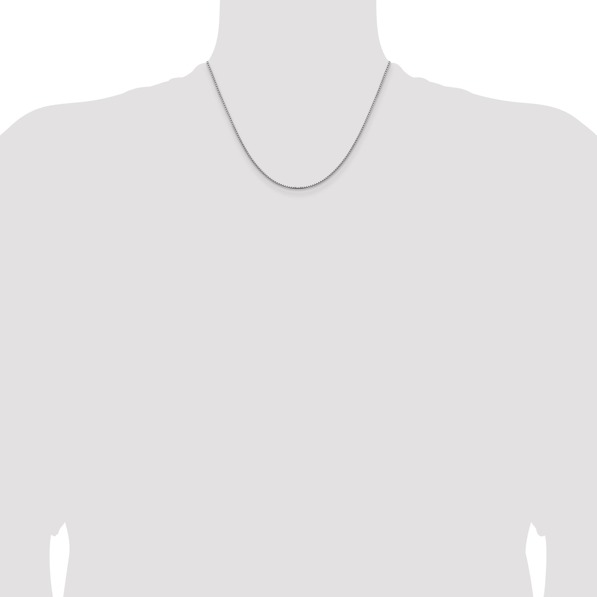 The 14K White Gold 14K 1.45mm Concave Box Chain is a sleek piece of jewelry made to last. This 18-inch chain features a polished finish and a smooth, modern look with a unique concave profile. Its sturdy lobster clasp keeps it secure, making it perfect for everyday wear. Crafted with precision using machine-made techniques, the chain offers durability and shine. Rhodium plating adds extra protection and a bright white glow. The 14K White Gold 14K 1.45mm Concave Box Chain makes a stylish statement that won't fade. With a lifetime guarantee, it’s a reliable choice for any jewelry lover.