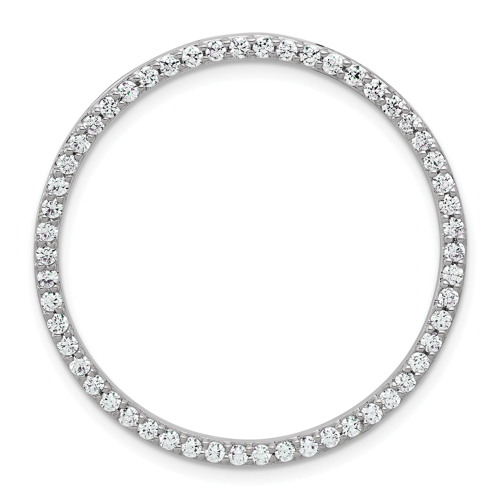The 14k White Gold 1 carat Lab Grown Diamond VS+ F+ Circle Chain Slide Pendant shines with elegance. This stunning piece features a polished finish, showcasing 54 round diamonds set in solid 14k gold. Each diamond reflects light beautifully with a clarity grade of VS+. The pendant measures 33.6 mm in length, making it a perfect accessory for any outfit. A rhodium plating gives this pendant a lustrous silver tone. Elevate your jewelry collection with the 14k White Gold 1 carat Lab Grown Diamond VS+ F+ Circle Chain Slide Pendant and enjoy its timeless charm.