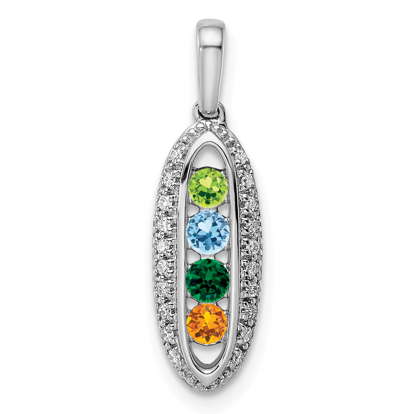 The 14K White Gold Family Jewelry Diamond Semi-Set Pendant makes a stunning gift for any loved one. Crafted from high-quality 14K white gold, this pendant shines with a rhodium finish that resists tarnish. It features four round diamonds, totaling 0.090 carats, set securely in prong settings. With a length of 25 mm and a width of 8 mm, it's designed for comfort and elegance. This semi-mount piece allows you to personalize it with your choice of center stone, making each pendant unique. Celebrate family connections with the 14K White Gold Family Jewelry Diamond Semi-Set Pendant.