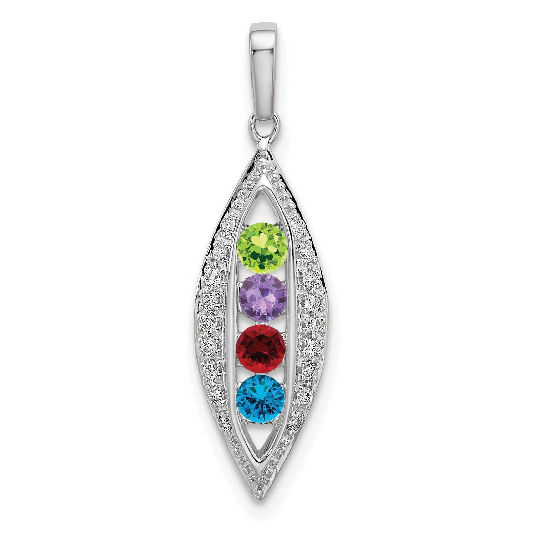 The 14K White Gold Family Jewelry Diamond Semi-Set Pendant beautifully blends elegance and personalization. This pendant features luxurious 14K white gold, showcasing a stunning diamond with a total weight of 0.090 carats. It has a semi-mount design, allowing you to customize it with your choice of center stones that represent your loved ones. The pendant measures 27 mm in length and 8 mm in width, making it the perfect accessory for any outfit. With its rhodium plating, the 14K White Gold Family Jewelry Diamond Semi-Set Pendant shines bright and lasts long, adding a touch of sophistication to your collection.