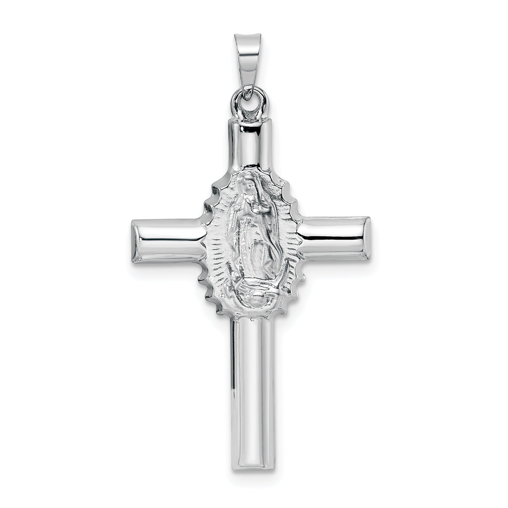 The 14k White Gold Polished and Satin Hollow Cross Pendant is a stunning piece perfect for any occasion. Crafted from high-quality 14K white gold, this pendant showcases a clever blend of polished and satin finishes, creating a unique depth. Its hollow design keeps it lightweight while maintaining a bold presence. Measuring 36.7 mm in length and 20.1 mm in width, this versatile charm works well with various chains. The pendant is unisex, making it a great gift for anyone. Elevate your jewelry collection with the 14k White Gold Polished and Satin Hollow Cross Pendant.