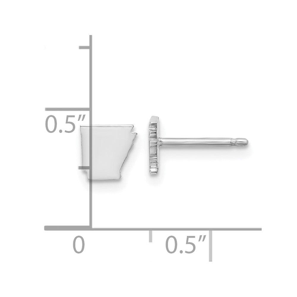 Introducing the 14K White Gold 14Kw Arkansas State Earrings, a perfect piece for those who love to show off their state pride. Crafted from polished 14K white gold and plated with rhodium, these earrings have a sleek, shiny finish. Measuring just 6.69 mm long and 7.75 mm wide, they are small and subtle yet full of statement. The button style with a secure post and push-back design makes them easy to wear and comfortable all day. These earrings are a great way to celebrate Arkansas with a piece that’s both stylish and meaningful.