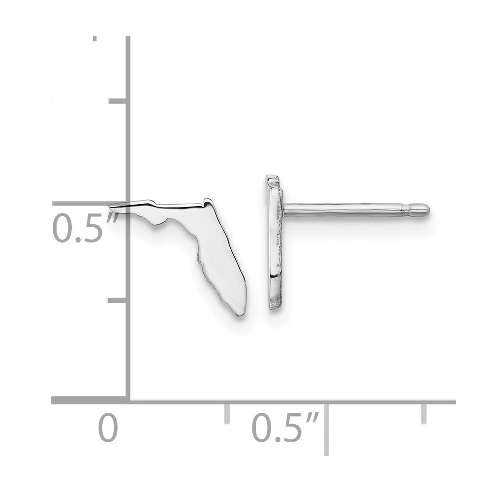 Show off the 14K White Gold 14Kw Florida State Earrings, a perfect piece for any woman’s collection. Crafted from high-quality 14K gold with a shiny polish finish, these earrings feature a sleek button style and measure 8.65 mm long and 7.07 mm wide. The rhodium plating adds extra shine and durability. Easy to wear with a secure post and push-back closure, these earrings are comfortable for daily use. The design captures the spirit of Florida and adds a touch of elegance to any look. The 14K White Gold 14Kw Florida State Earrings blend charm with craftsmanship for a timeless appeal.