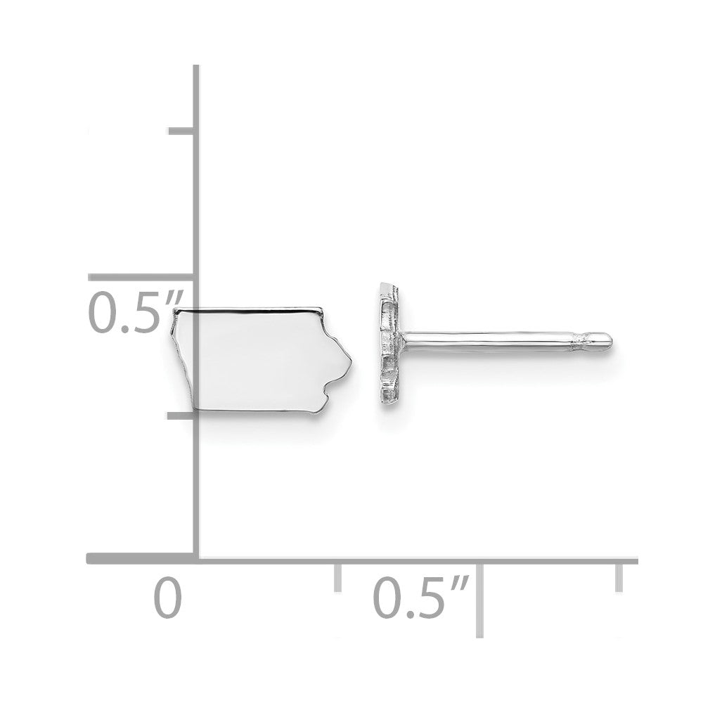 The 14K White Gold 14Kw Iowa State Earrings are a charming addition to any jewelry collection. Crafted from high-quality 14-karat gold with a polished finish, these earrings feature a sleek silver-tone plating that adds a stylish touch. Designed for women, these small button earrings measure just over 5 mm in length and 9 mm in width. They use a secure post and push-back closure for comfort and stability. Perfect for showing pride in Iowa, these earrings are a subtle way to keep your state close. The elegant look makes them ideal for daily wear or special occasions.