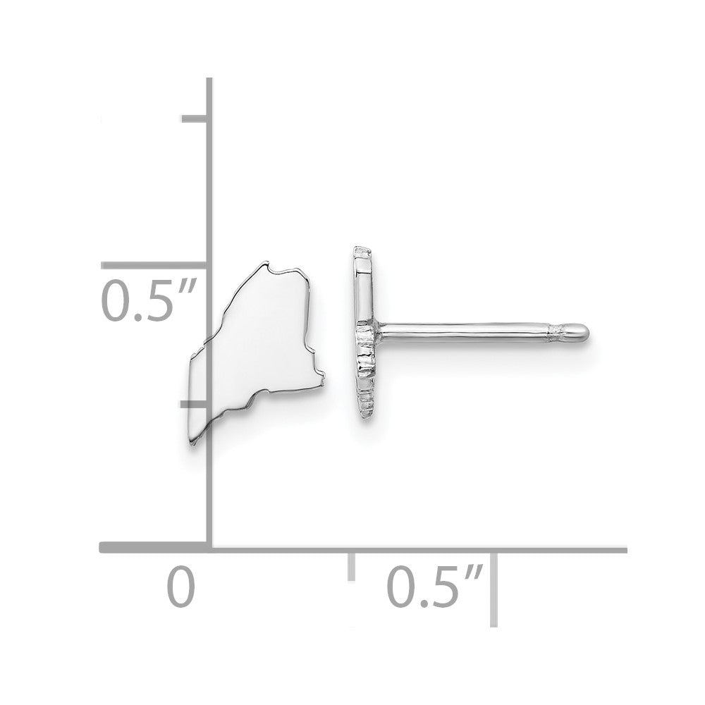Show your love for Maine with the 14K White Gold Maine State Earrings. These small, sleek earrings are crafted with 14K gold and finished with a bright polish. They feature a silver-tone rhodium plating that adds shine and durability. Each earring measures just over 10 mm long and 6.5 mm wide, making them a subtle yet stylish addition to any wardrobe. The post and push-back closure ensure comfort and security. Perfect for daily wear, the 14K White Gold Maine State Earrings showcase local pride while offering a classic jewelry style that gets noticed.