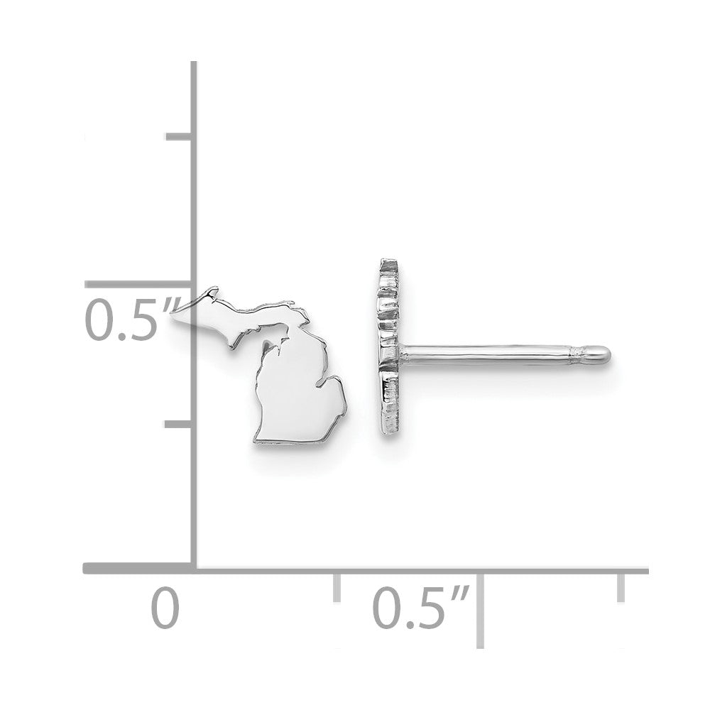 Show your pride with the 14K White Gold Michigan State Earrings. Crafted from high-quality 14K gold, these earrings shine with a polished finish and durable rhodium plating. They measure just under 10 mm, making them perfect for daily wear. The silver-tone button design features a comfortable post and push back closure for a secure fit. Small yet stylish, these earrings celebrate your love for Michigan in a sleek, elegant way. The 14K White Gold Michigan State Earrings are a great addition to any jewelry collection, blending charm and quality.