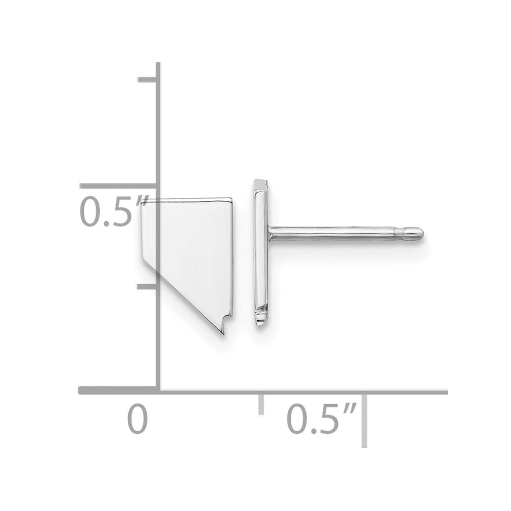 Discover the 14K White Gold 14Kw Nevada State Earrings, a charming addition for women who love subtle elegance. Crafted with high-quality 14K white gold, these earrings feature a polished finish and a sleek Nevada state shape. The small, feminine size measures 9.17 mm in length and 6.32 mm wide, making them perfect for everyday wear. Rhodium plating gives a bright silver tone that resists tarnish. Their post and push-back closure ensure a secure fit. The elegant look of the 14K White Gold 14Kw Nevada State Earrings makes them a must-have for those who want unique jewelry with a touch of local pride.