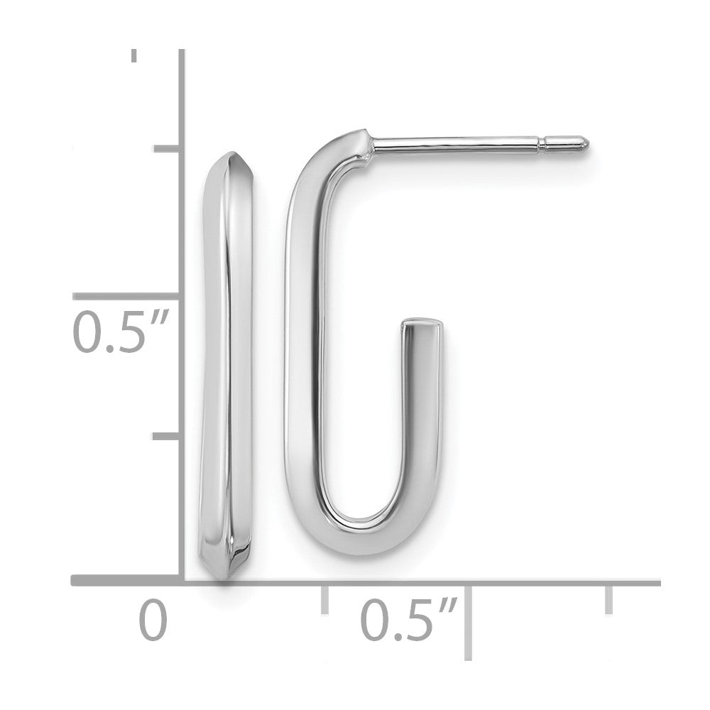 The 14K White Gold 14Kw Polished Knife Edge Oval Post J-Hoop Earrings are perfect for adding a sleek touch to any look. Crafted from high-quality 14K gold with a shiny finish, these lightweight earrings measure 19mm long with a 7.2mm width. The polished surface and rhodium coating give them a sharp, silver-tone glow. Designed in a classic J-hoop style, they feature a post and push-back closure for secure wear. These earrings promise durability with a lifetime guarantee, making them an ideal choice for everyday elegance. The 14K White Gold 14Kw Polished Knife Edge Oval Post J-Hoop Earrings combine style and quality effortlessly.