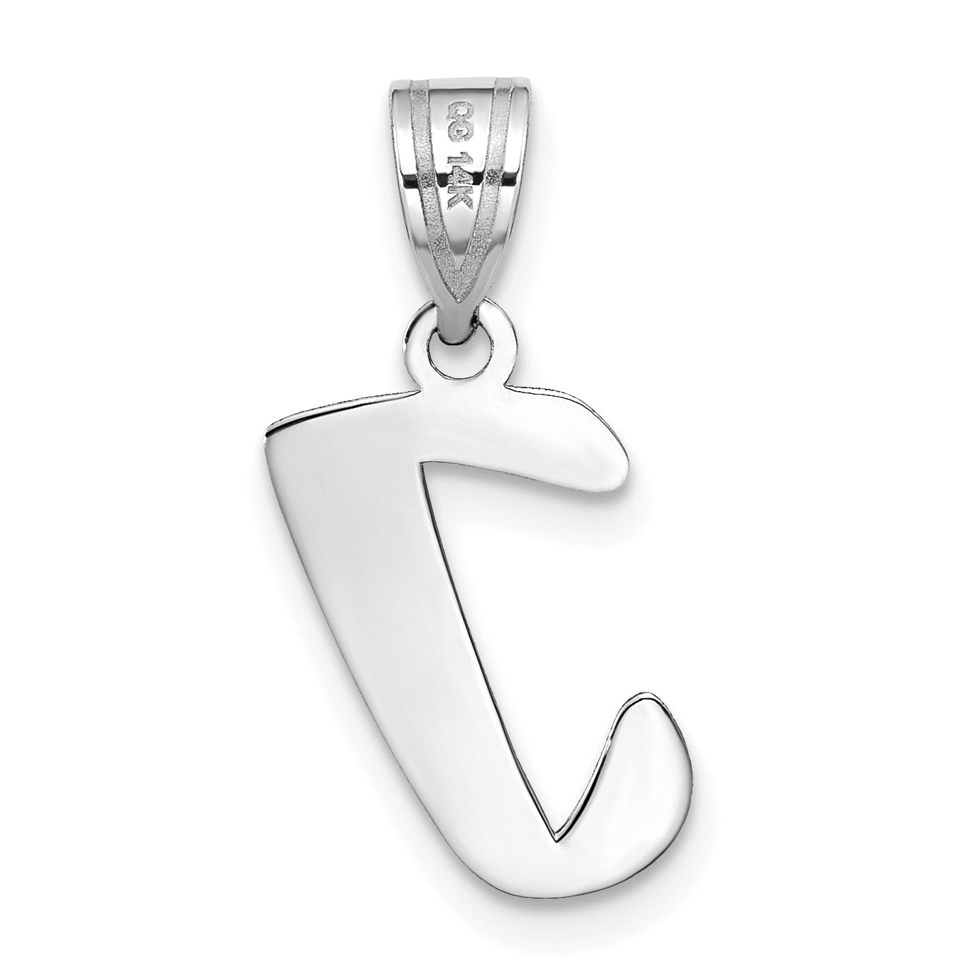 Introducing the stunning 14k White Gold Polished Script Letter I Initial Pendant. This exquisite piece shines with a smooth, polished finish that catches the eye. Crafted from high-quality 14K gold and plated with rhodium, it boasts durability and luster. The elegant laser-cut design brings the letter "I" to life, making it a perfect gift for yourself or a loved one. This medium-sized pendant adds a touch of personal style to any outfit, whether worn alone or layered. Make a stylish statement with the 14k White Gold Polished Script Letter I Initial Pendant.
