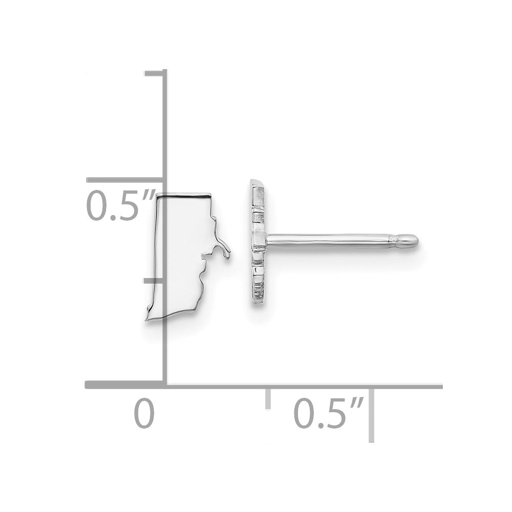 Show off your love for Rhode Island with the 14K White Gold Rhode Island State Earrings. These earrings feature a sleek, polished 14K white gold finish that shines with every move. With a compact size of 9.23 mm in length and 6.01 mm wide, they fit comfortably and add a subtle sparkle. The button style and friction backs make them easy to wear all day. Crafted with a rhodium plating, these earrings resist tarnish and stay bright. Perfect for daily wear, the 14K White Gold Rhode Island State Earrings offer timeless beauty and a touch of local pride.