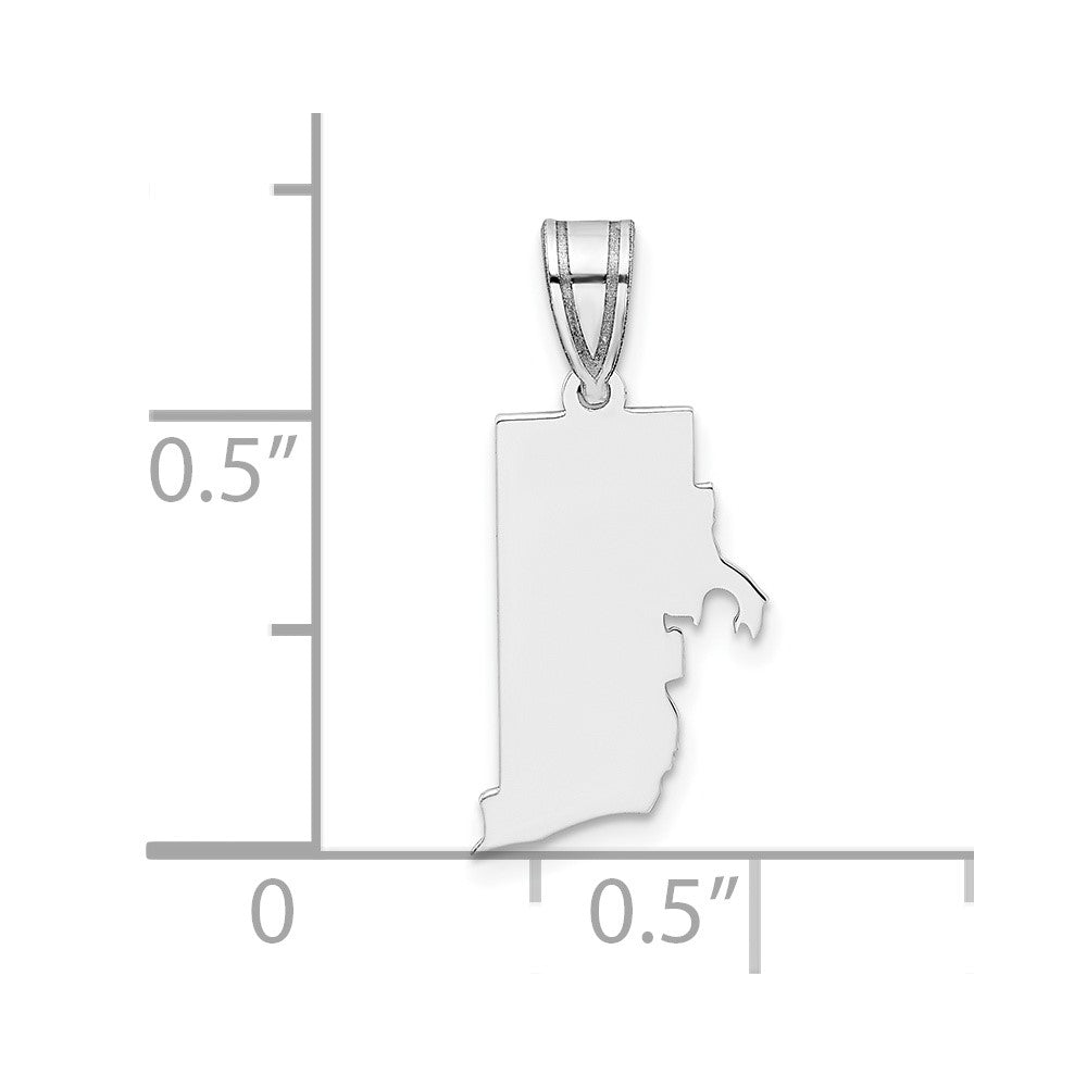 Show off your pride with the 14K White Gold Rhode Island State Pendant. Crafted from pure 14K gold and finished with a bright polish, this pendant features a sleek Rhode Island outline that’s both stylish and meaningful. Measuring 24.15 mm long, it has a distinct charm that’s about 19.75 mm and 12.5 mm wide. The rhodium plating adds shine, while laser-cut details give it a sharp look. Perfect for daily wear, this personalized pendant hangs from a sturdy 3.2-mm bail. Represent your state in style with the 14K White Gold Rhode Island State Pendant.