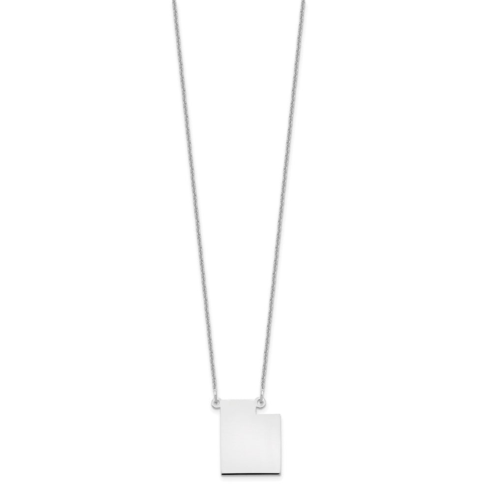 Show off your style with the 14K White Gold Utah State Necklace. This sleek piece features a polished, rhodium-plated chain that measures 18 inches long. The charming pendant, personalized to showcase Utah, measures 16.7 mm by 13.4 mm. The cable chain is sturdy, with a 1 mm width, and finished with a lobster clasp for easy wear. Crafted with precision, the necklace appeals to both men and women who love local flair. The 14K white gold gives it a bright, durable shine. The 14K White Gold Utah State Necklace is perfect for daily wear or special occasions.