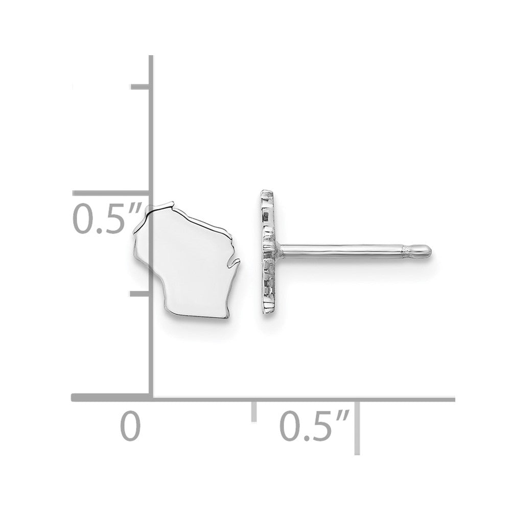 Show your love for Wisconsin with these 14K White Gold Wisconsin State Earrings. Crafted from pure 14K gold and finished with a sleek polish, they shine with a bright rhodium coating. Each earring measures 7.45 mm tall and 7.67 mm wide, making them perfect for daily wear. The classic button style features a secure post and push back closure, offering comfort and style. These small earrings are a subtle way to keep Wisconsin close to your heart. A must-have for jewelry lovers who want a piece that’s both meaningful and chic.