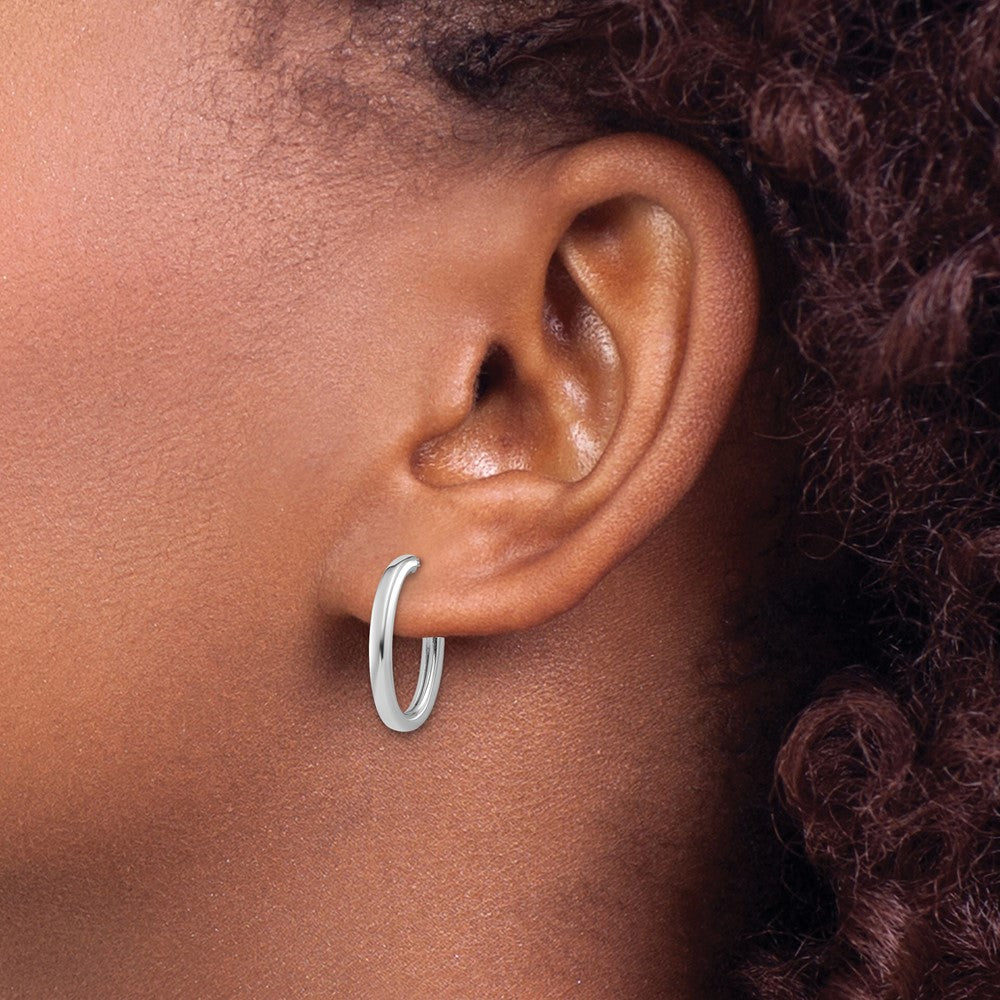 The 14K White Gold 14Kwhite Polish 2.0mm Flat Oval Post J-Hoop Earrings are a perfect mix of style and comfort. Crafted from high-quality 14K white gold, these earrings shine with a polished finish and are plated with rhodium for extra durability. The lightweight design makes them easy to wear all day long. Measuring 18 mm in length and 12 mm wide, they feature a sleek flat oval shape with a secure post and push-back closure. These J-Hoop earrings are built to last and come with a lifetime guarantee. Add a touch of elegance with the 14K White Gold 14Kwhite Polish 2.0mm Flat Oval Post J-Hoop Earrings.