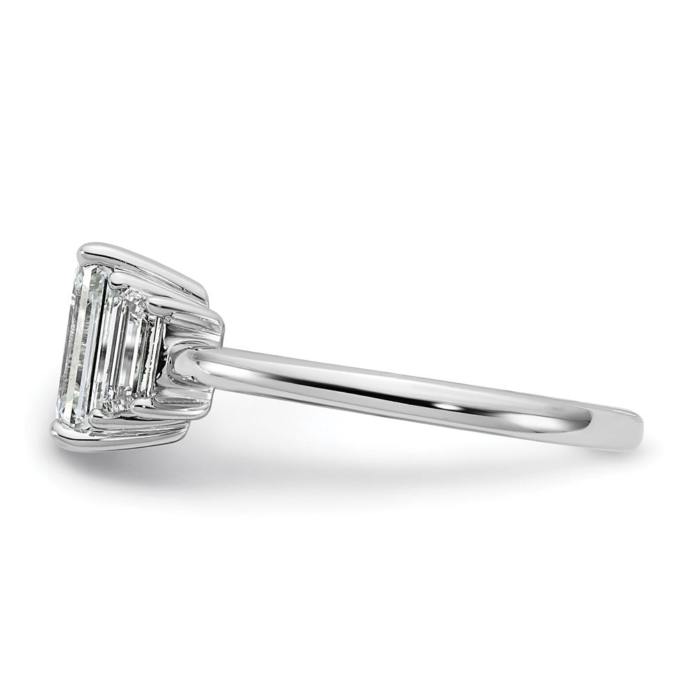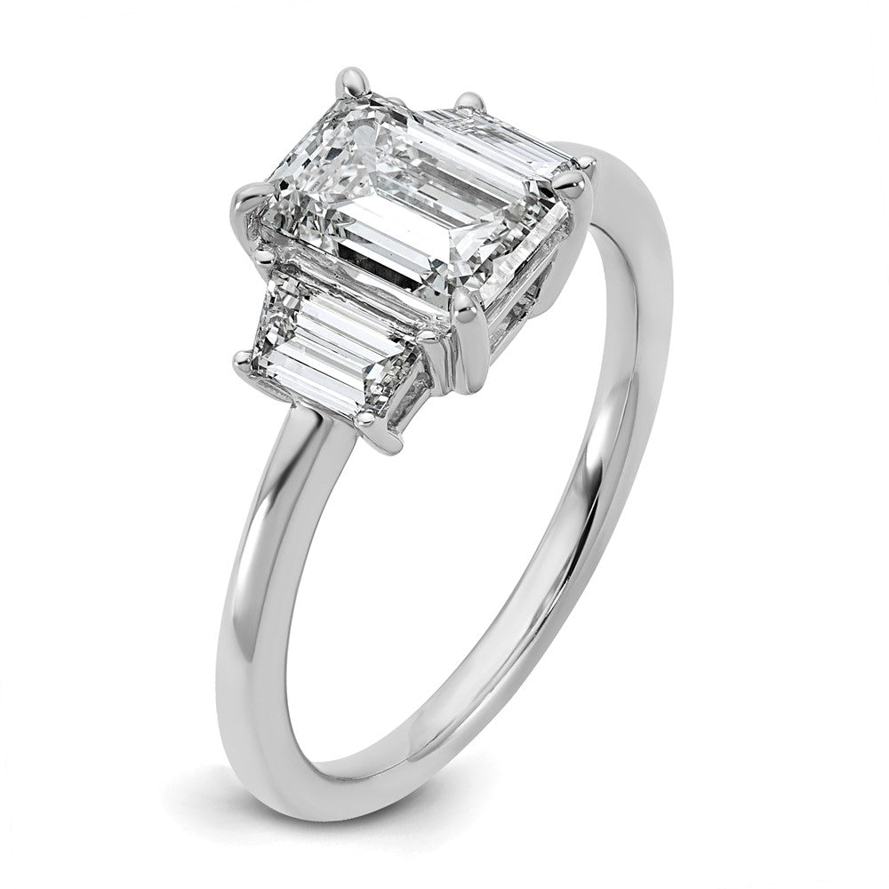 14K White Gold 2 carat Lab Grown Diamond VS+ F+ Complete Emerald and Trapezoid Engagement Ring