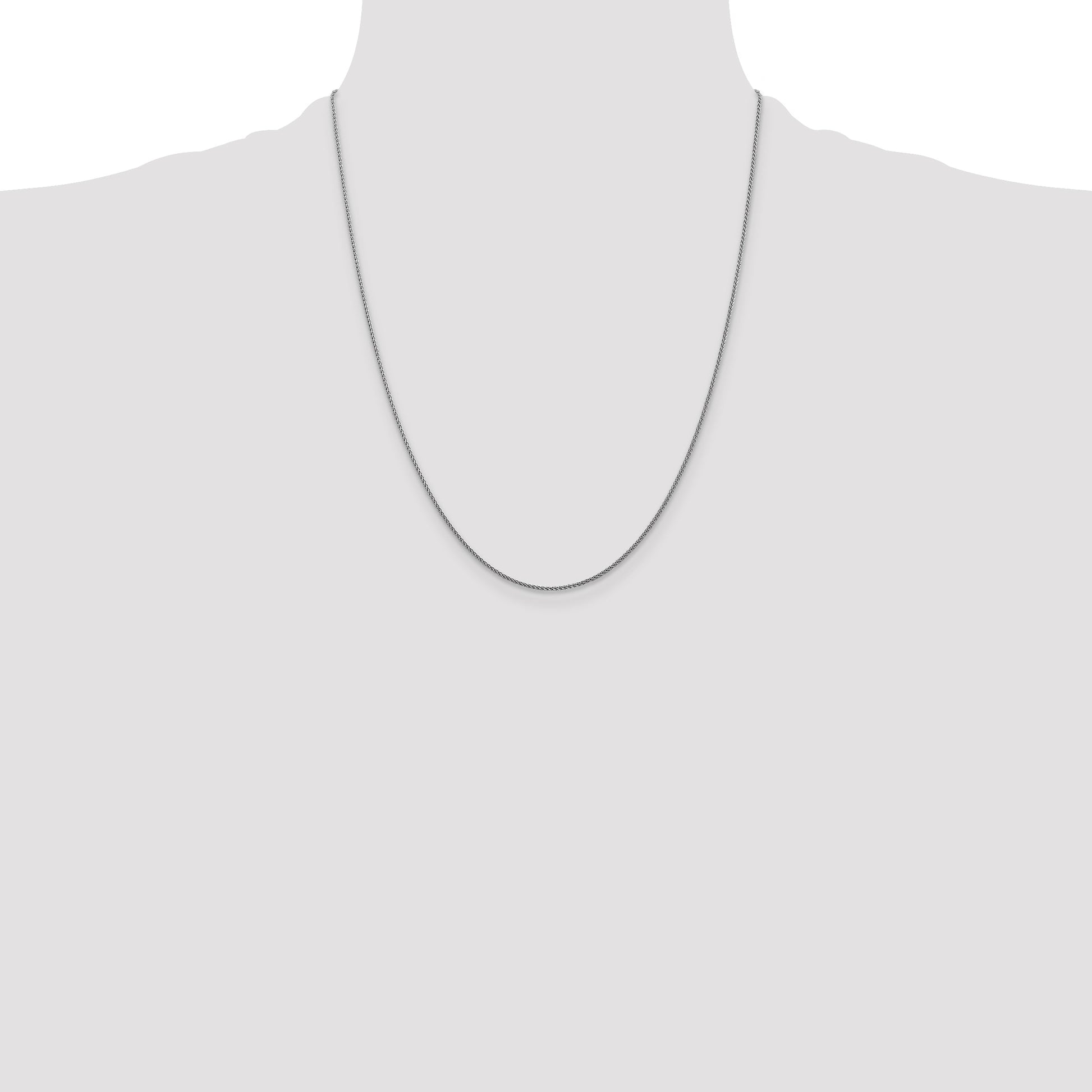 The 14K White Gold 22 Inch 1.05mm Diamond-Cut Spiga Chain is a true beauty in the world of jewelry. Crafted from lustrous 14K gold with a rhodium finish, this chain shines with elegance. At 22 inches long, it gracefully adorns the neck, while its 1.05mm width offers a delicate yet impressive touch. The diamond-cut texture catches light brilliantly, adding irresistible sparkle. The Lobster clasp ensures a secure fit and ease of wear. Ideal for any occasion, the 14K White Gold 22 Inch 1.05mm Diamond-Cut Spiga Chain is a timeless addition to any wardrobe.