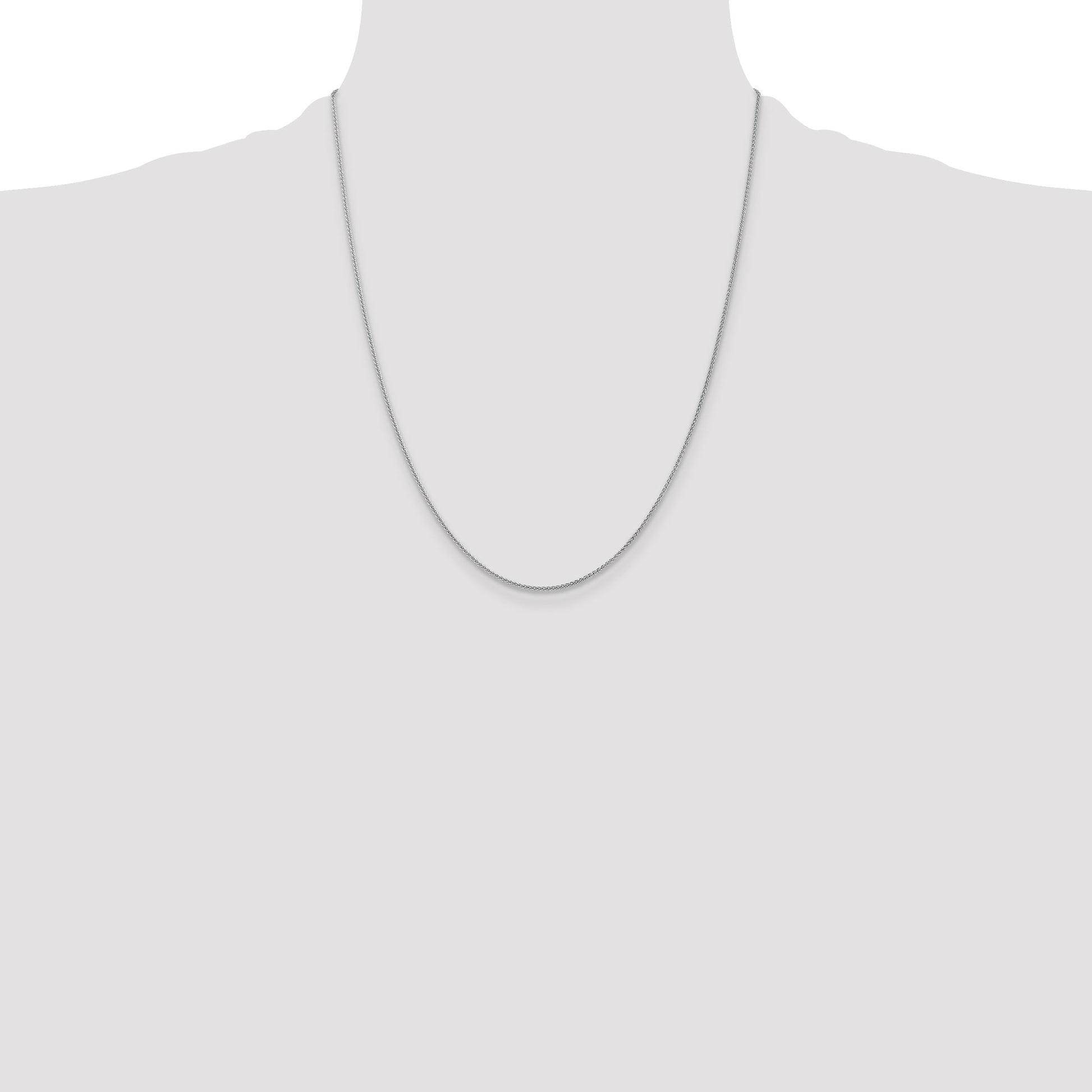 The 14K White Gold 22 Inch Spiga Chain is a blend of elegance and style. Its polished finish and rhodium plating offer a chic look. Crafted to perfection, this 1.05mm wide chain showcases a Spiga design, often known as wheat for its unique texture and pattern, providing durability and grace. The 22-inch length drapes beautifully on the neck, while the sturdy lobster clasp ensures secure wear. Perfect for everyday elegance or for adding a touch of sophistication to special occasions, this 14K White Gold 22 Inch Spiga Chain is a must-have accessory for any wardrobe.