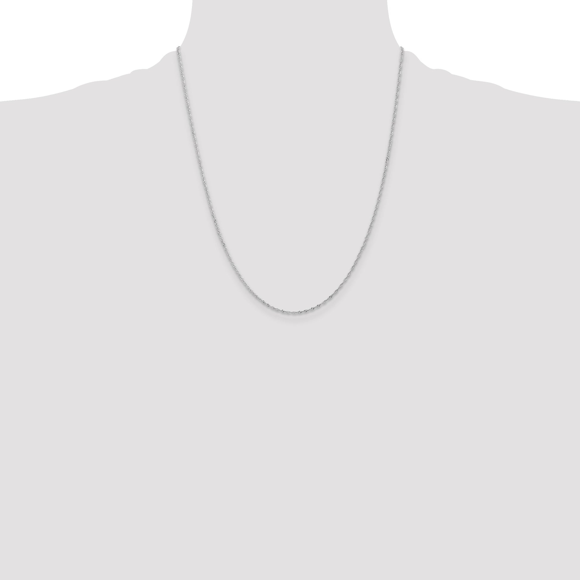 The 14K White Gold 22 Inch 1.10mm Singapore Chain offers a touch of elegance and sophistication to any outfit. Crafted from polished 14K white gold, this chain embodies luxury with its refined design. Its sleek 1.10mm width and substantial 22-inch length make it the perfect accessory for layering or wearing alone. The Singapore chain style adds a unique twist, while the rhodium plating ensures a brilliant, long-lasting shine. Secured with a durable spring ring clasp, this necklace promises both style and peace of mind. Indulge in timeless beauty with the 14K White Gold Singapore Chain.