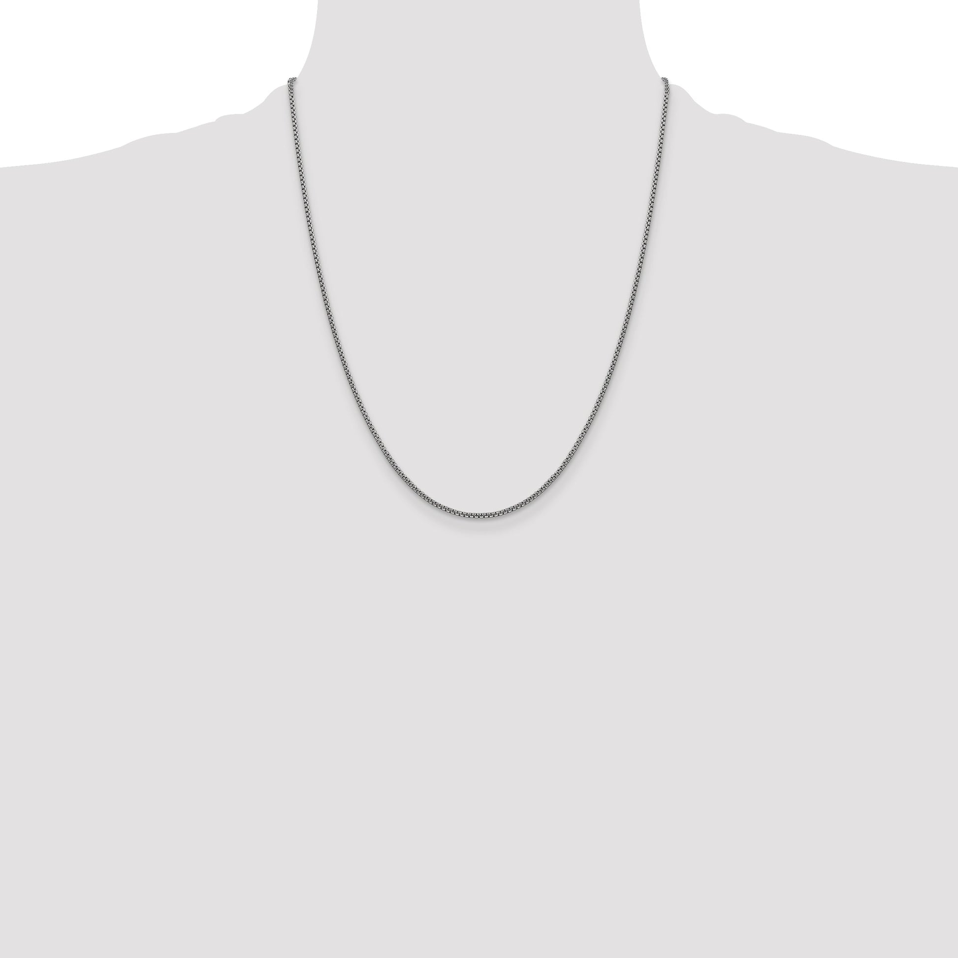 Introducing our exquisite 14K White Gold 22 Inch 1.5mm Semi-Solid Round Box Chain with Lobster Clasp. This polished beauty, adorned with a chic rhodium plating, offers a timeless elegance to any wardrobe. Expertly casted and machine-made, the 1.5mm width ensures a delicate yet durable design. The secure lobster clasp adds functionality, making it perfect for everyday wear or special occasions. Elevate your jewelry collection with the 14K White Gold 22 Inch 1.5mm Semi-Solid Round Box Chain, a stunning piece that exudes class and sophistication.