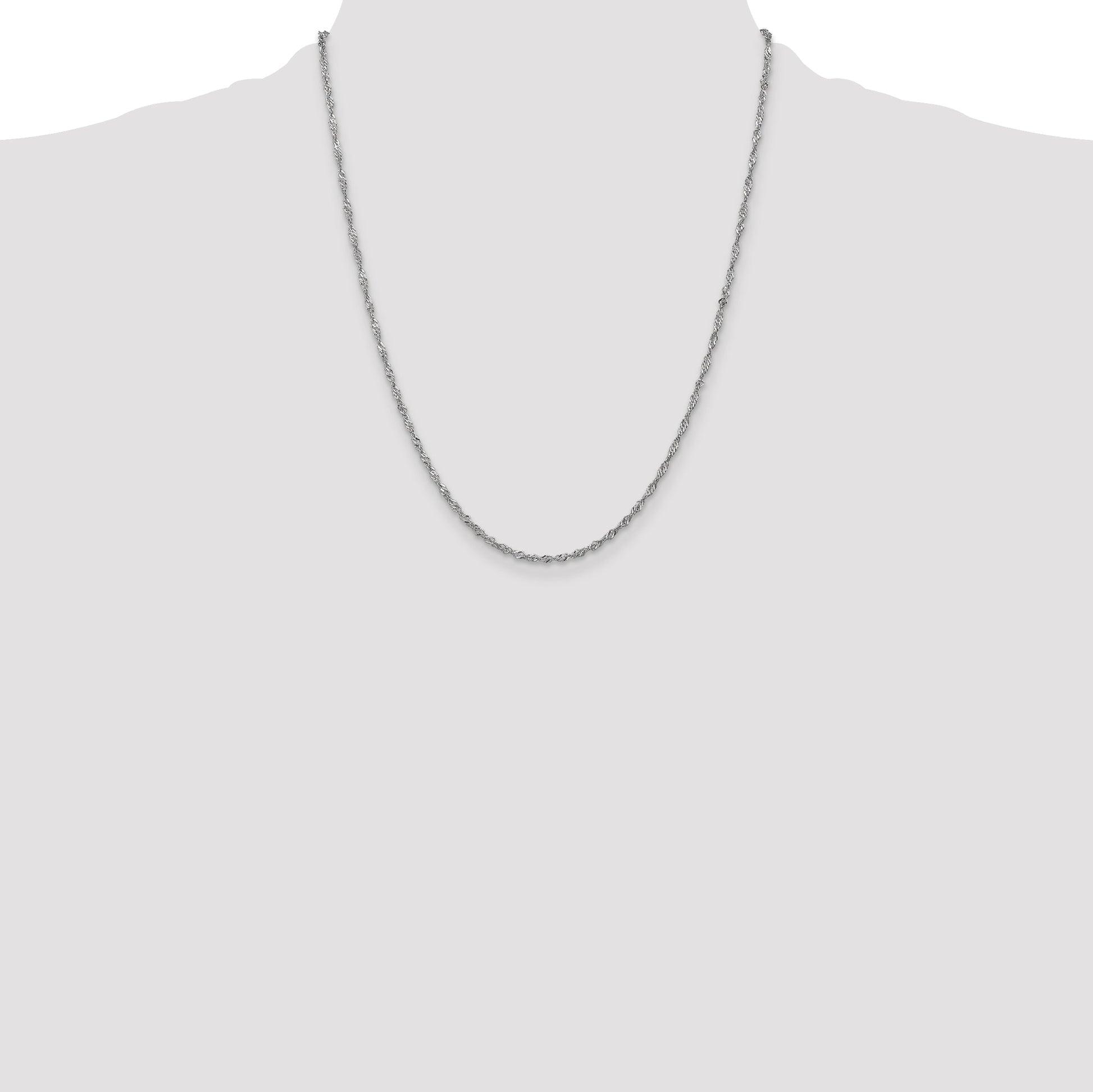 The 14K White Gold 22-Inch Singapore Chain stands out in the world of fine jewelry. With its polished finish, this chain gleams brightly, embodying elegance and timeless beauty. Made from pure 14K white gold and plated with rhodium, this chain offers durability and a lustrous shine that resists tarnish. The intricate 1.7mm width Singapore link pattern adds a touch of sophistication. Designed for comfort and convenience, the solid lobster clasp ensures your chain stays secure while you make a statement with any outfit. Elevate your jewelry collection with the luxurious 14K White Gold 22-Inch Singapore Chain today.