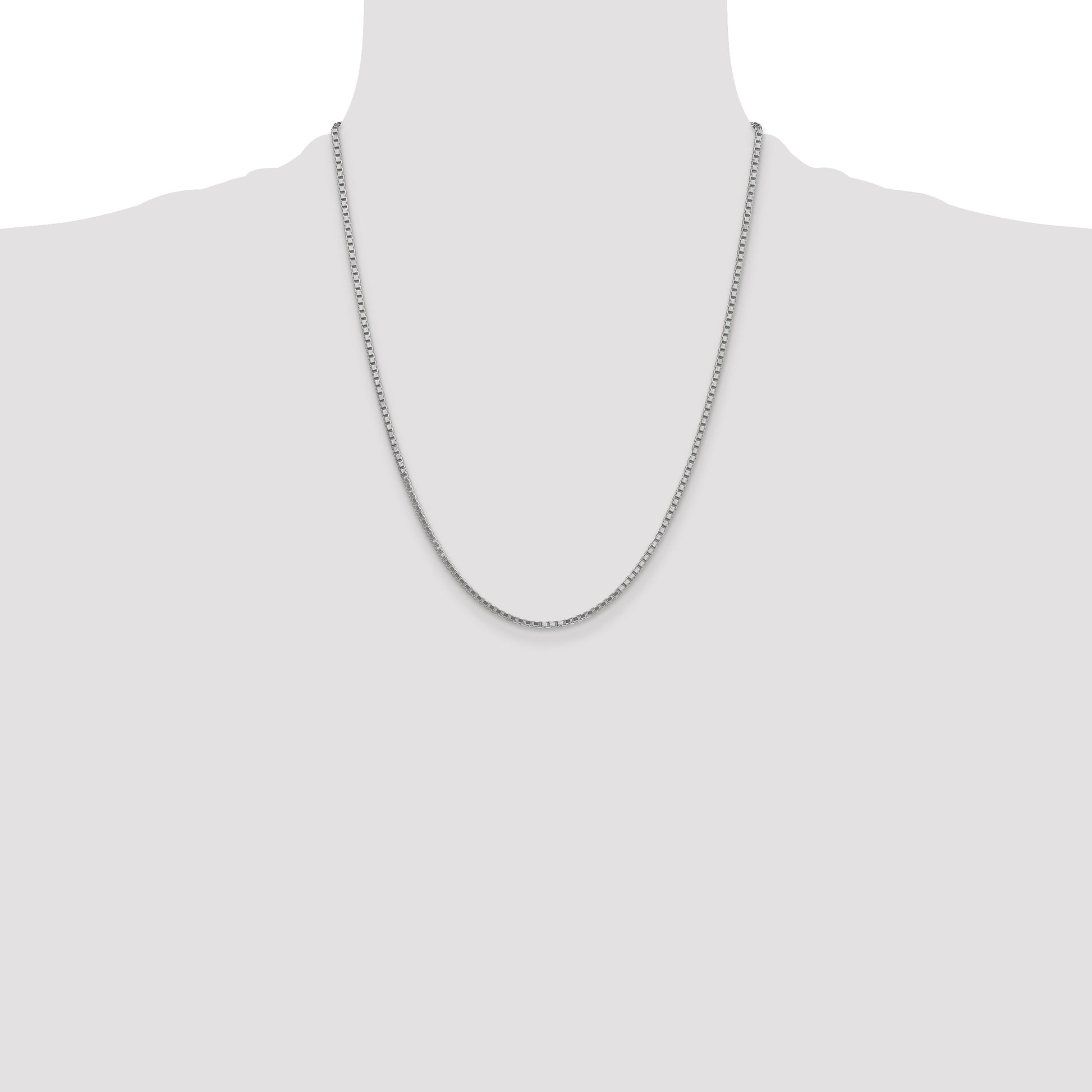 The 14K White Gold 14K 22 Inch 1.9mm Box With Lobster Clasp Chain is a must-have for any jewelry lover. Made from solid 14K white gold, this chain offers a sleek, polished look that shines. It measures 22 inches long and features a sturdy lobster clasp for easy wear. The 1.9mm width gives it a clean, elegant feel, perfect for layering or wearing on its own. The rhodium plating adds extra shine and durability. Designed for women, the 14K White Gold 14K 22 Inch 1.9mm Box With Lobster Clasp Chain is a versatile piece that elevates any style.