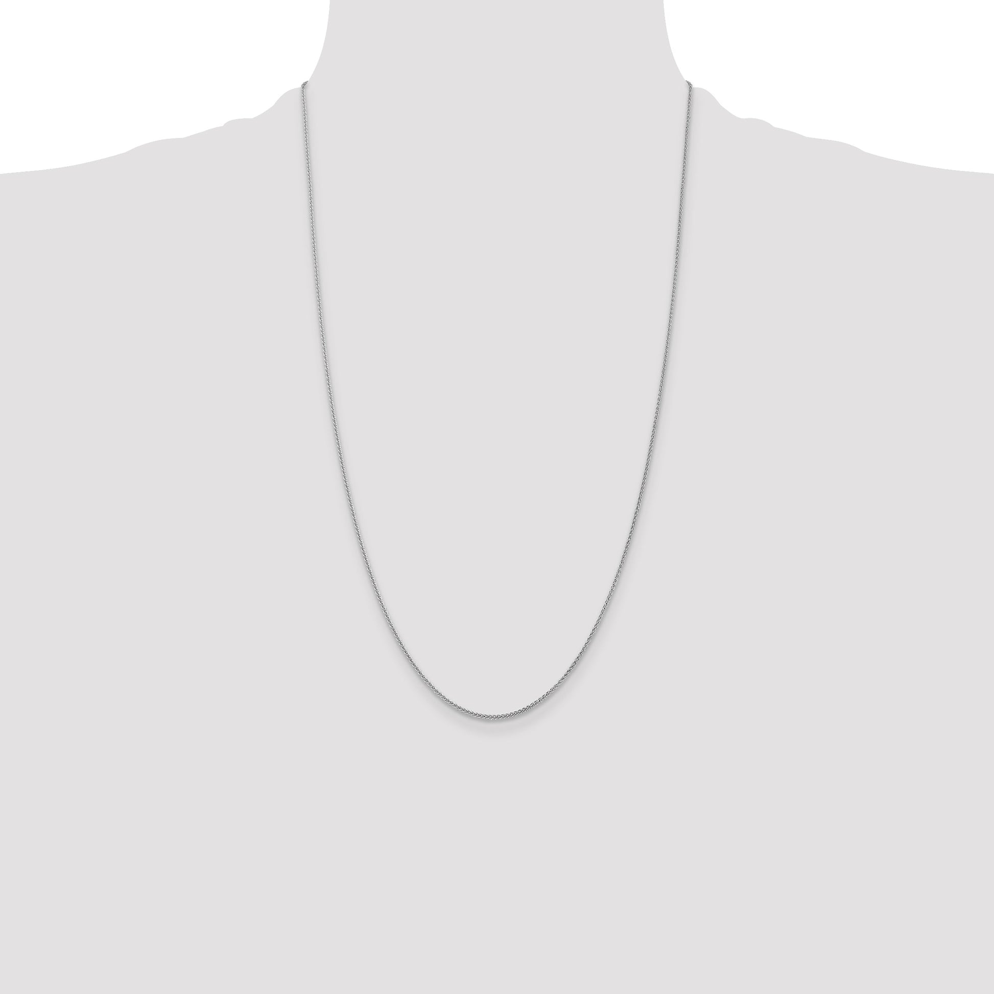 The 14K White Gold 26-Inch Spiga Chain blends elegance and style with its polished charm. Crafted from top-quality 14K white gold, this necklace features a sturdy Spiga chain that's 1.05 mm wide and 26 inches long, offering a sleek and modern appeal. Its rhodium plating enhances its luster and durability, making it a lasting addition to any jewelry collection. The lobster clasp ensures secure wear, while the die-struck technique promises a robust finish. Ideal for any woman's wardrobe, this chain is a timeless choice for daily elegance.