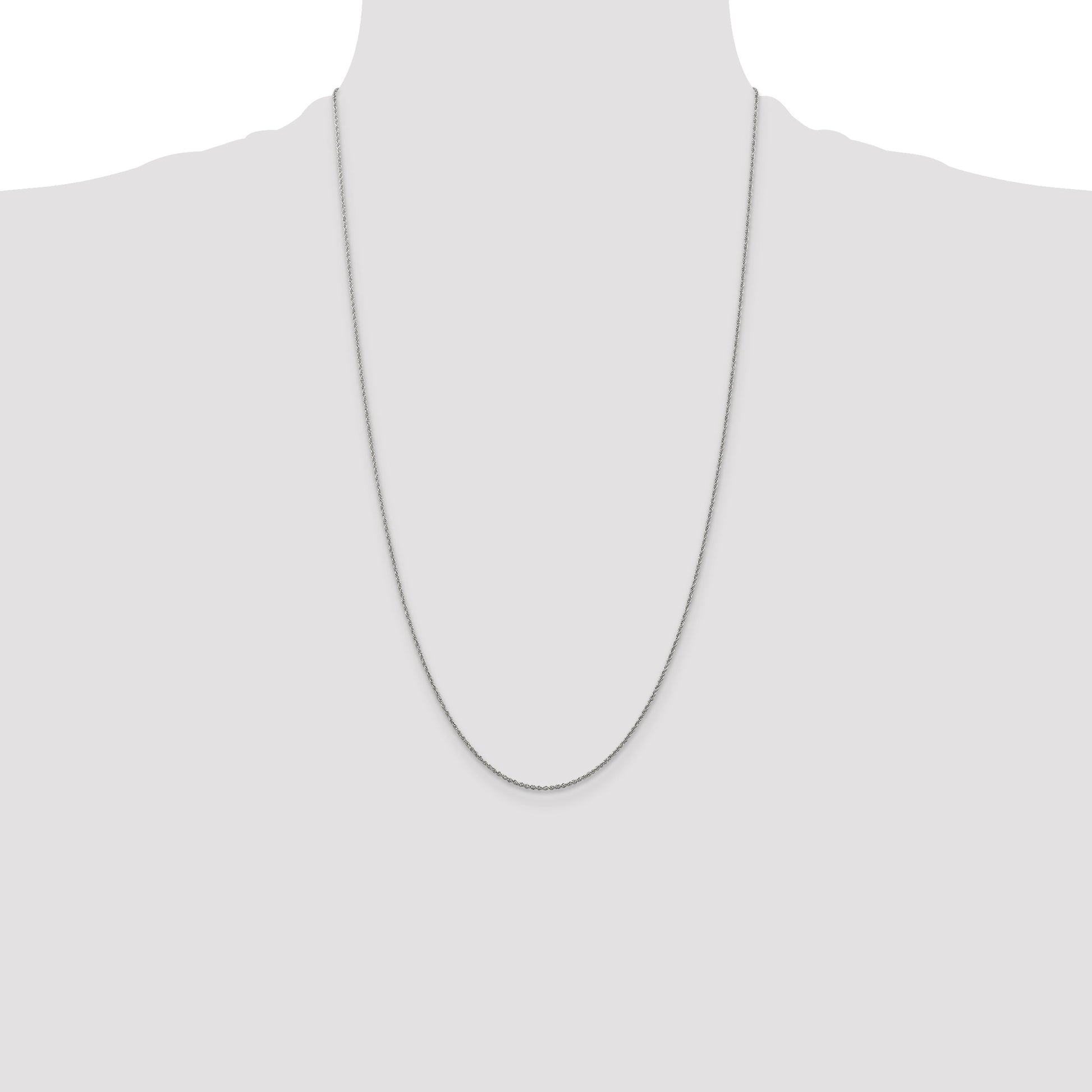 Introducing the exquisite 14K White Gold 26 Inch 1.1mm Baby Rope Chain— a true symbol of elegance and luxury. Crafted from the finest 14K gold, this necklace boasts a lustrous polish and a 26-inch length. The intricate rope design creates a stunning, textured look that catches the light beautifully. Its sleek 1.1mm width adds a delicate touch, perfect for any occasion. The sturdy spring ring clasp ensures it stays securely in place. With its rhodium plating, this white gold chain promises lasting shine. Elevate your style with the 14K White Gold 26 Inch 1.1mm Baby Rope Chain.