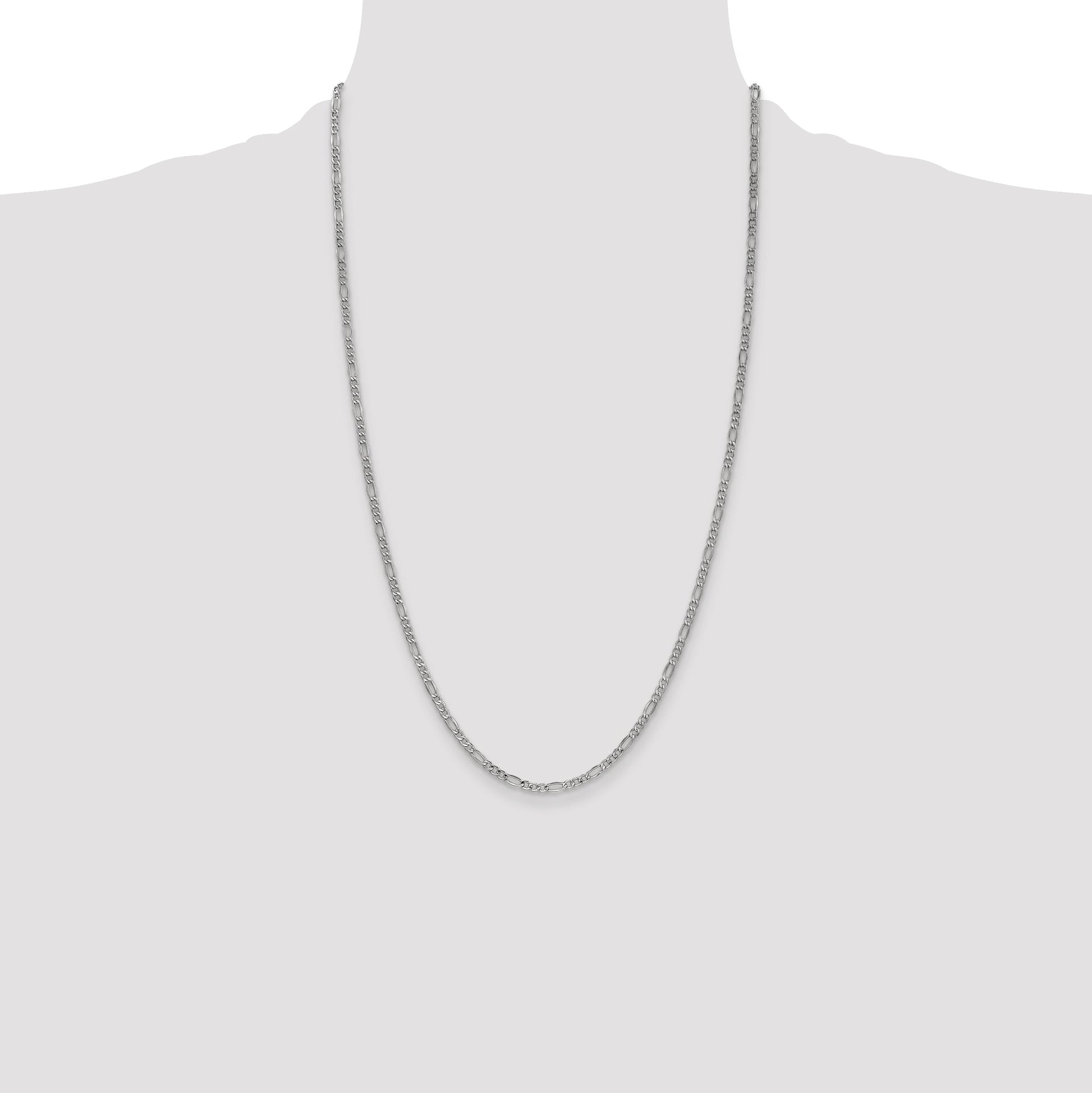 Introducing the 14K White Gold 26 Inch 2.5mm Semi-Solid Figaro With Lobster Clasp Chain, an exquisite choice for the modern woman. Crafted from polished 14K white gold and plated with rhodium, this chain dazzles with elegance. Its 26-inch length ensures a lovely drape, while the 2.5mm width offers a subtle yet glamorous touch. The semi-solid Figaro design brings durability without compromising style, and the secure lobster clasp guarantees a refined fit. This chain's lightweight, machine-made quality makes it perfect for daily wear. Experience timeless beauty with the 14K White Gold 26 Inch 2.5mm Semi-Solid Figaro With Lobster Clasp Chain.