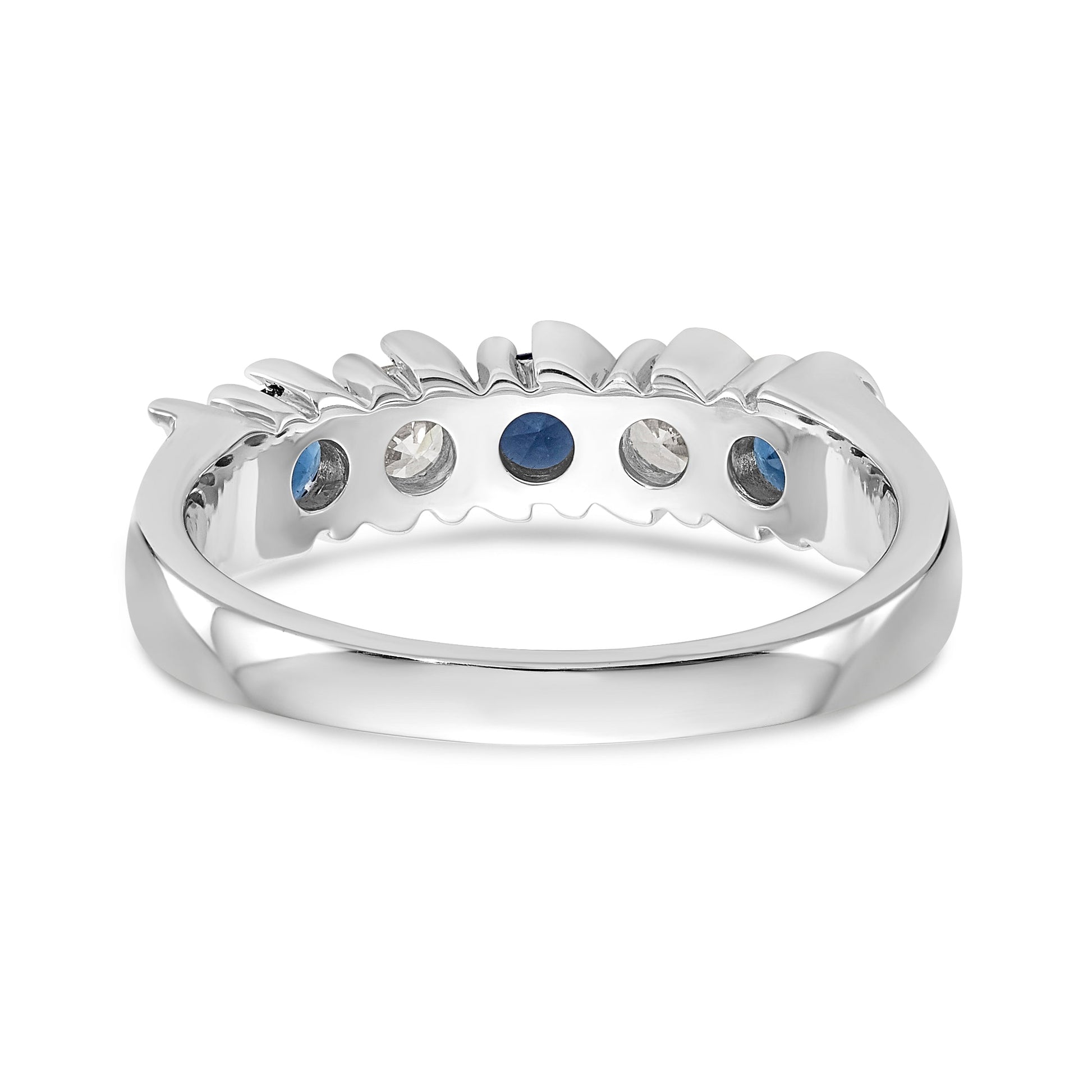 14k White Gold 3.25mm Sapphire AA Diamond 5 Stone Ring