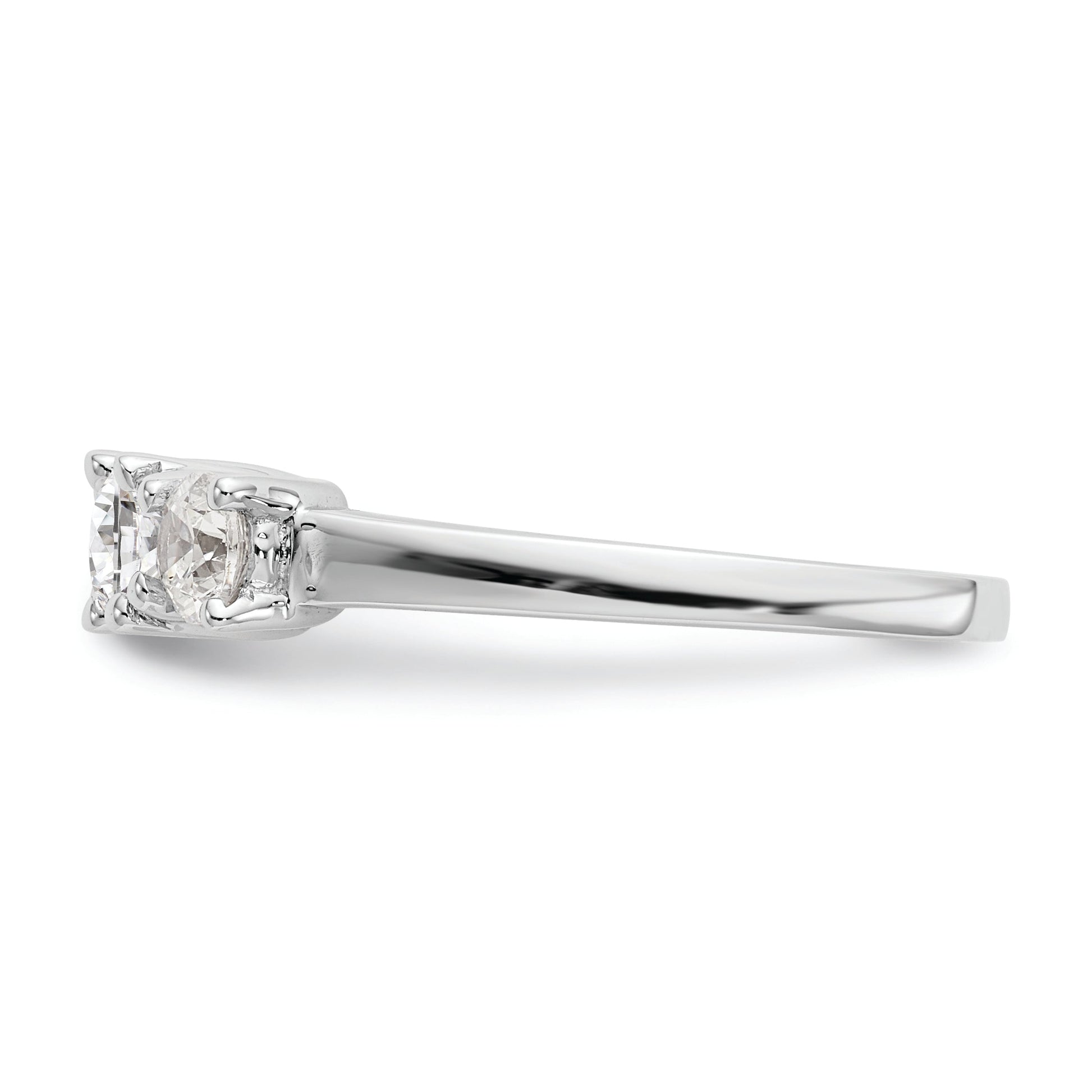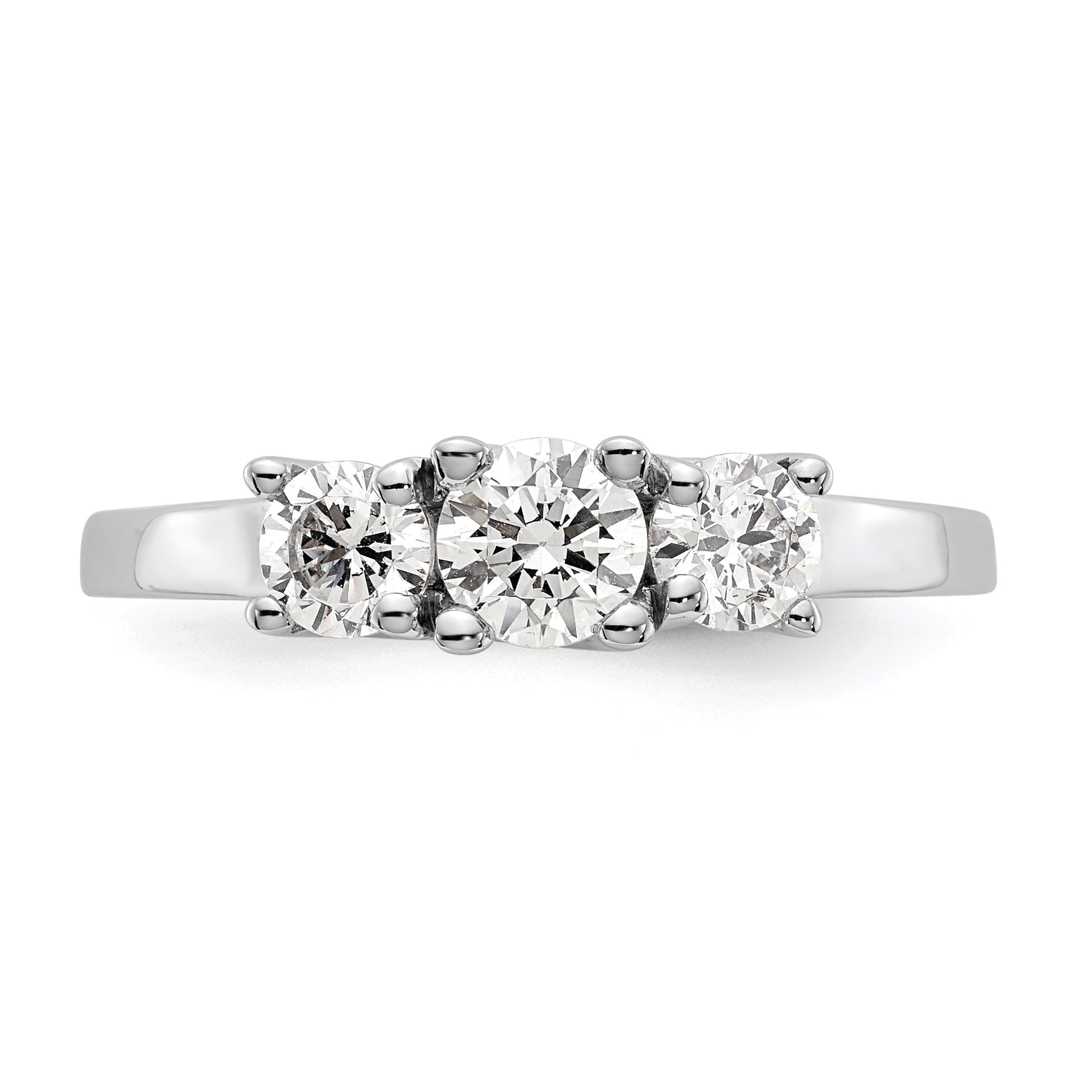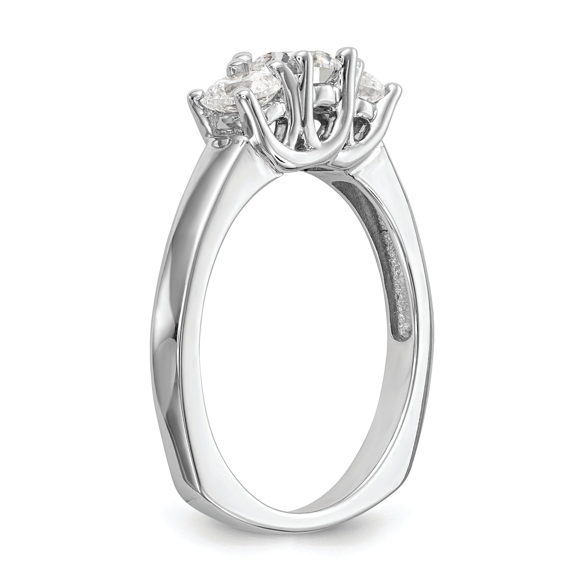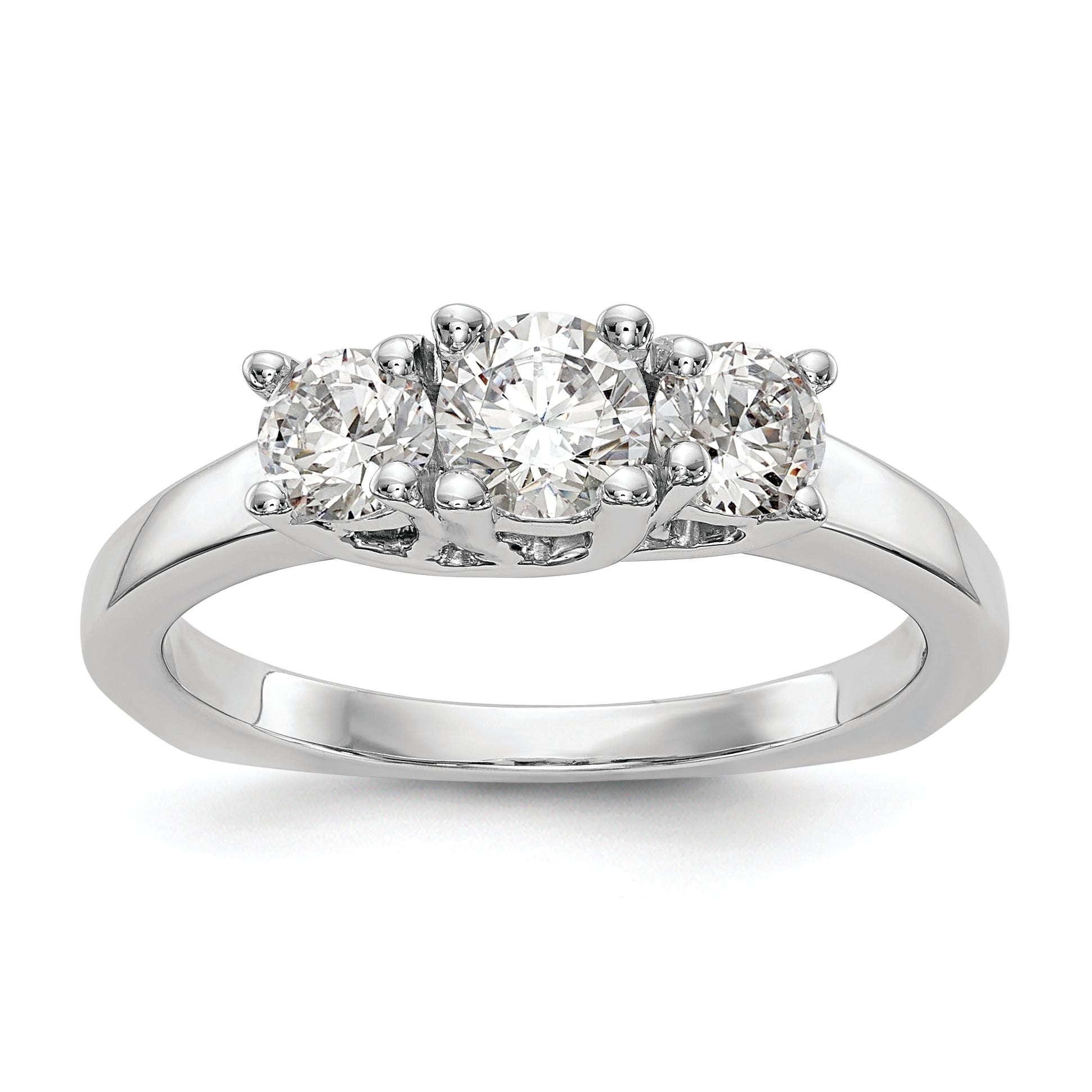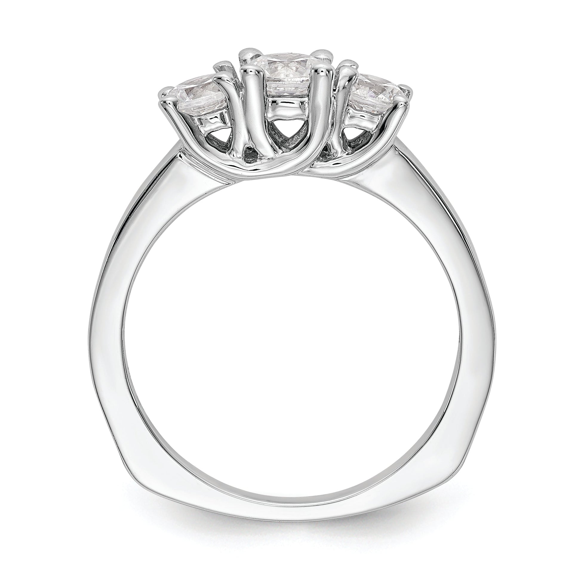 Introducing the 14K White Gold 14K 3-Stone Semi-Mount Engagement Ring, a stunning piece that highlights elegance and simplicity. This ring features a classic design with a 1/2 carat center diamond and two 4mm side diamonds, all set in a polished, rhodium-plated band. Crafted from durable 14K gold, it has a tapered band and a comfortable fit. The open-back setting boosts sparkle, while the solid build offers lasting beauty. This beautiful ring is perfect for those seeking a timeless symbol of love and can be easily sized to fit perfectly. The 14K White Gold 14K 3-Stone Semi-Mount Engagement Ring truly shines.