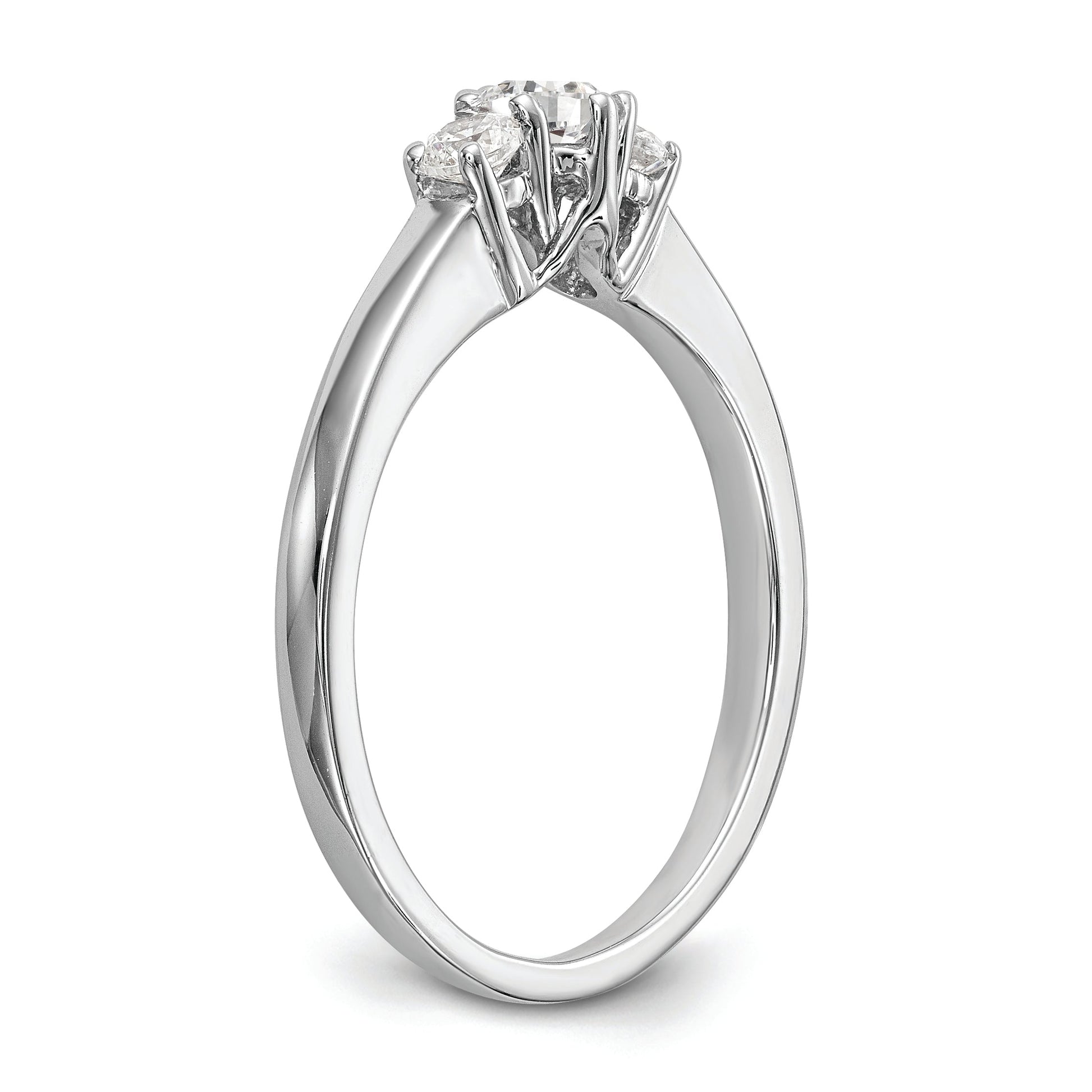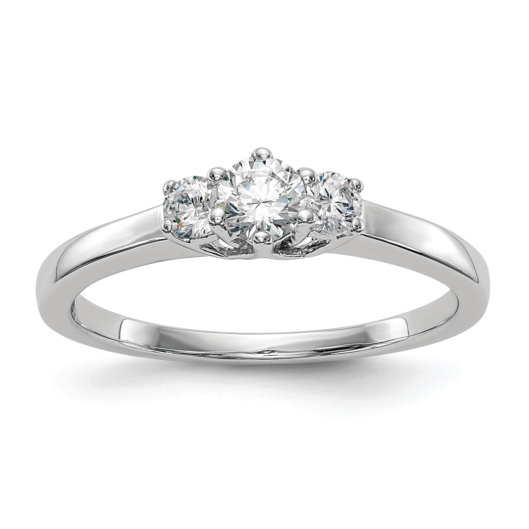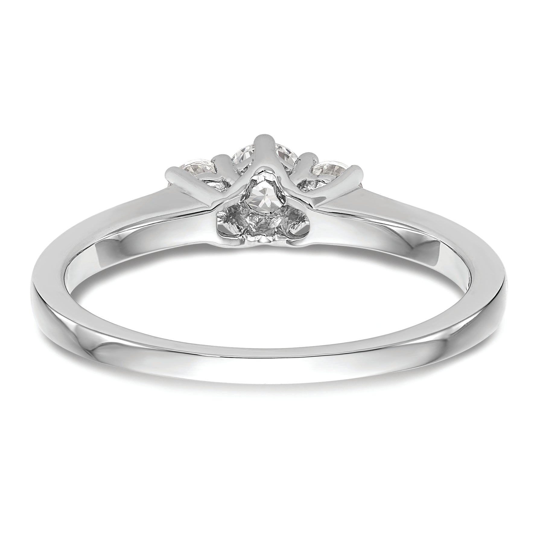 Discover timeless elegance with the 14K White Gold 3-Stone Engagement Ring. Crafted from polished 14K white gold, this semi-mount design features a stunning 1/4 carat round center stone, set with two bright side diamonds that add sparkle and depth. The ring’s open back allows for easy sizing, and its slender band tapers beautifully from 1.6 to 1.75 mm. With a solid, casted build and a rounded edge, the 14K White Gold 3-Stone Engagement Ring offers a classic look for forever moments.