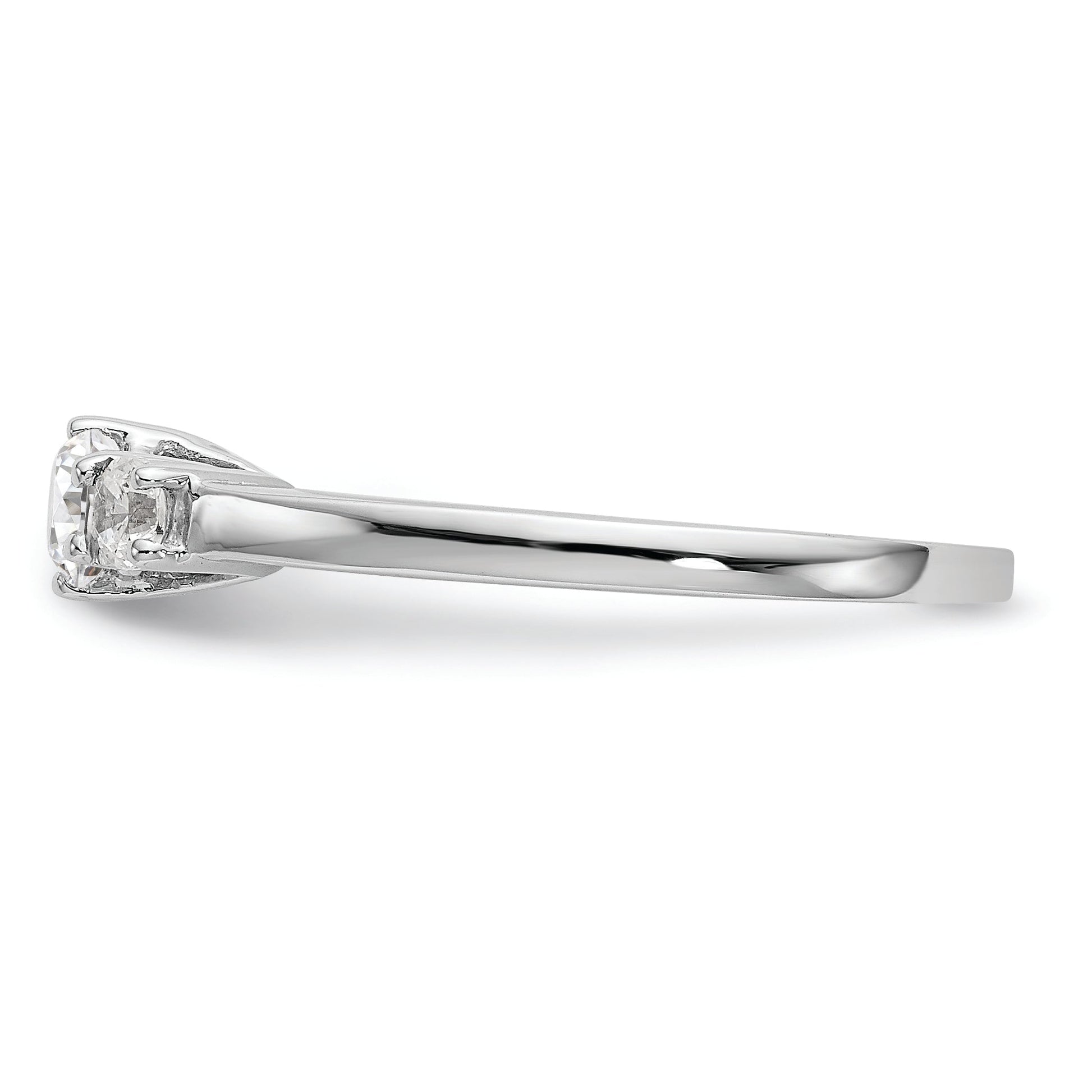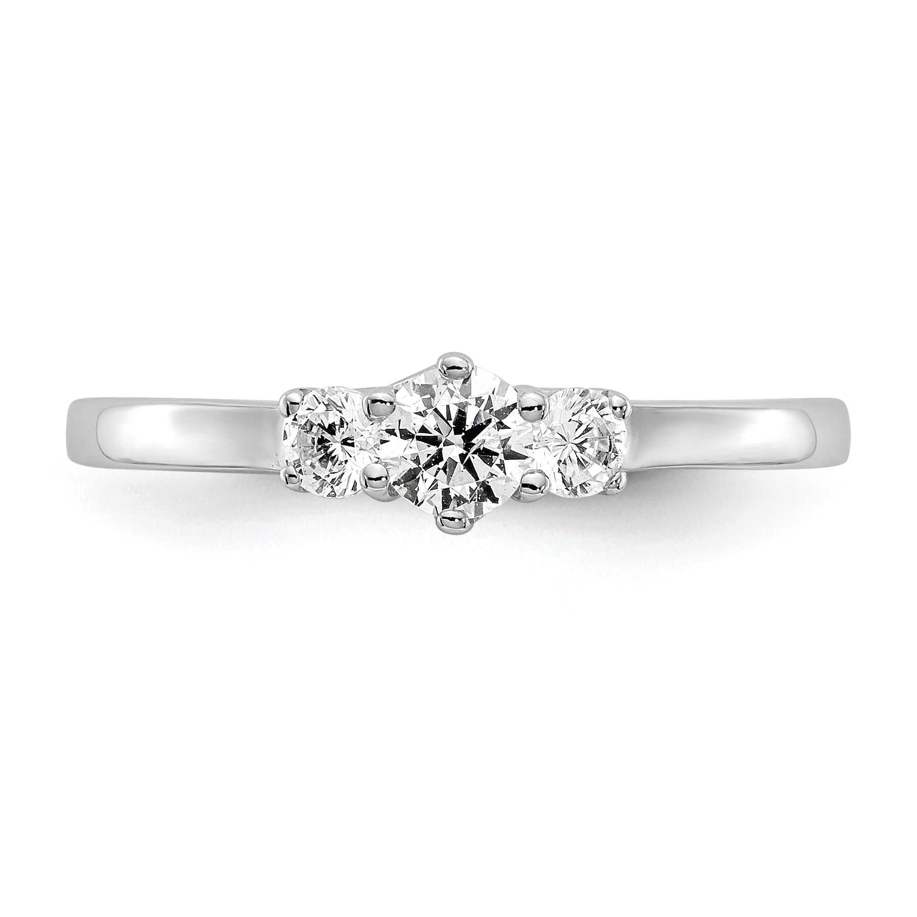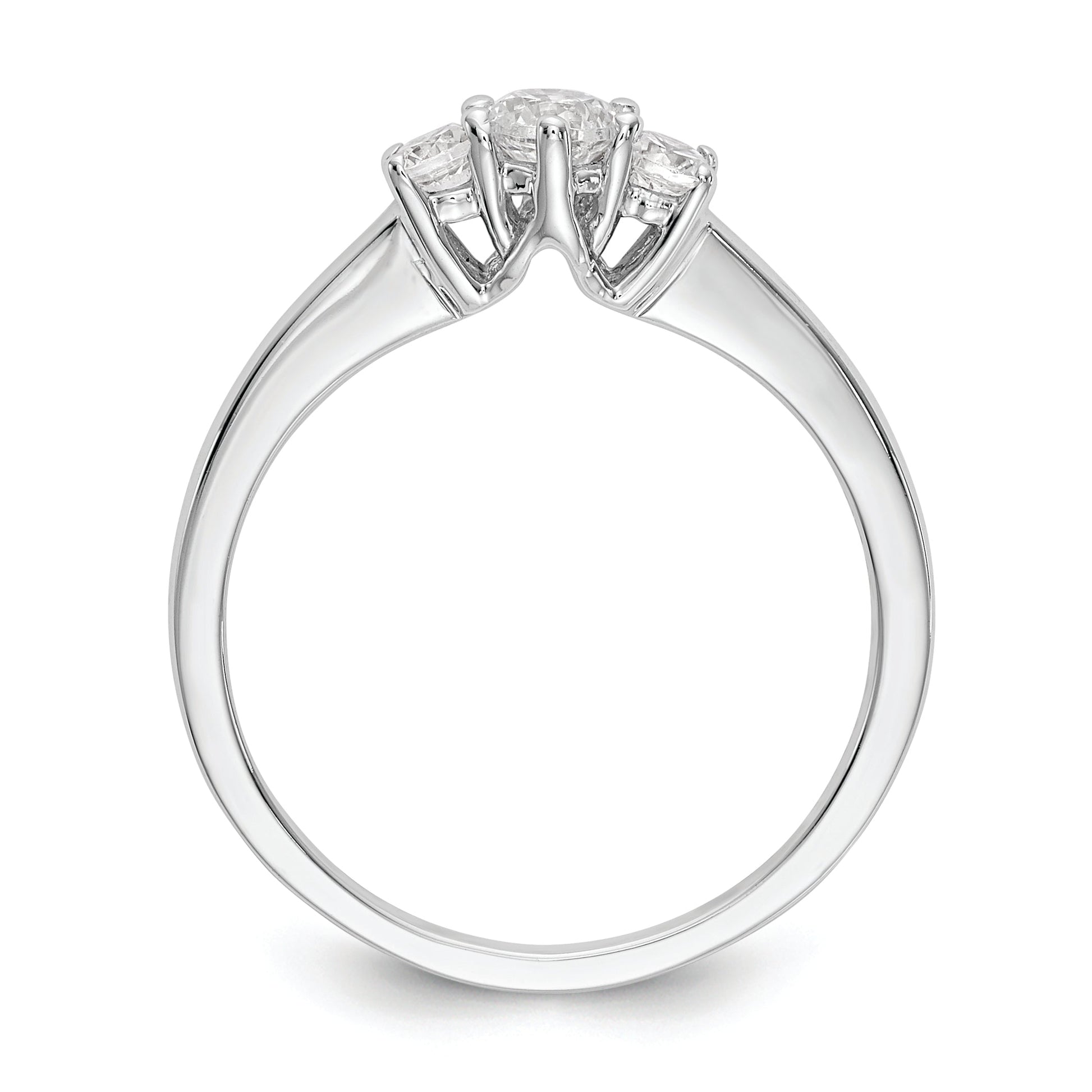 Discover timeless elegance with the 14K White Gold 3-Stone Engagement Ring. Crafted from polished 14K white gold, this semi-mount design features a stunning 1/4 carat round center stone, set with two bright side diamonds that add sparkle and depth. The ring’s open back allows for easy sizing, and its slender band tapers beautifully from 1.6 to 1.75 mm. With a solid, casted build and a rounded edge, the 14K White Gold 3-Stone Engagement Ring offers a classic look for forever moments.