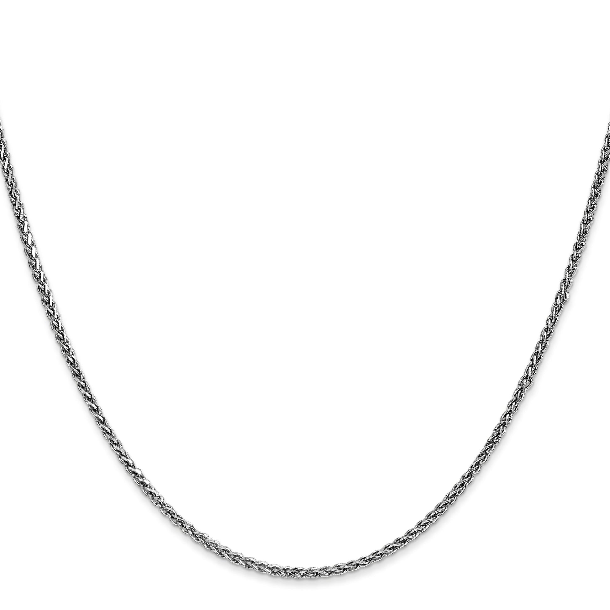 Meet elegance and sophistication with the 14K White Gold 30 Inch 1.7mm Diamond-Cut Spiga Chain. Fashioned for enduring beauty, this necklace boasts a polished rhodium finish, amplifying its luminous white gold charm. At 30 inches, its diamond-cut Spiga, or wheat chain style, provides a subtle sparkle, making it ideal for any pendant or as a standalone piece. A durable lobster clasp ensures a secure fit, while the solid structure promises lasting wear. The 14K White Gold 30 Inch Spiga Chain commands attention and brings timeless grace to your jewelry collection.