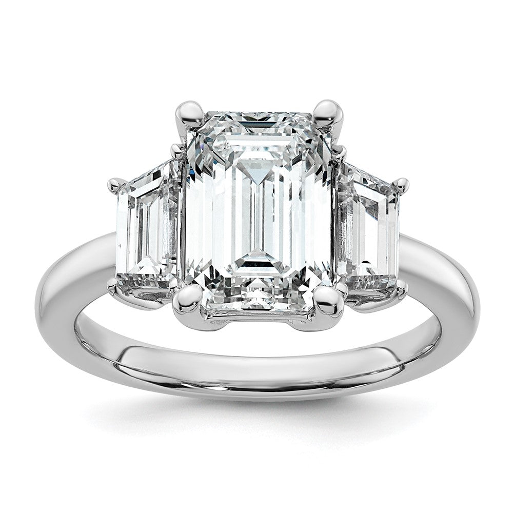 14K White Gold 4 carat Lab Grown Diamond VS+ F+ Complete Emerald and Trapezoid Engagement Ring