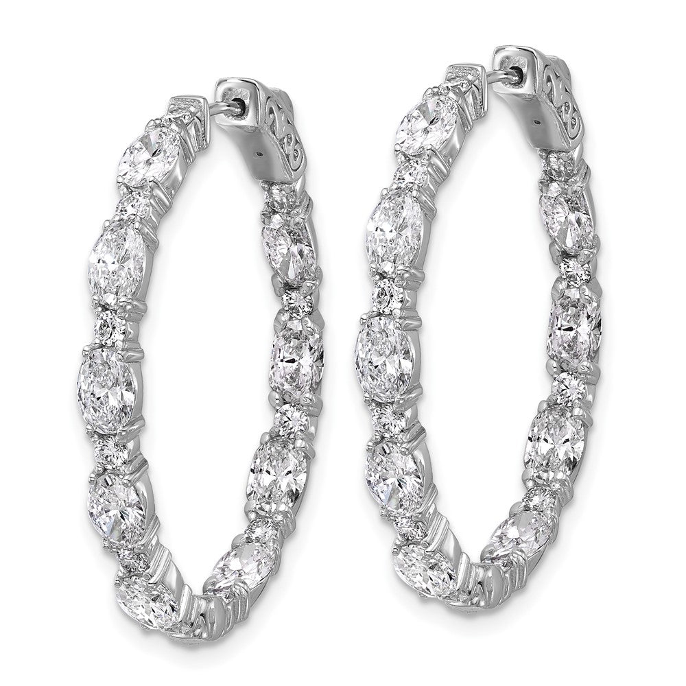 Introducing the stunning 14k White Gold 5 1/4 Carat Lab Grown Diamond VS+ F+ Oval and Round Complete In and Out Hoop Earrings. Crafted from polished 14k gold and plated with rhodium, these earrings shine beautifully. Featuring 18 oval-cut and 22 round-cut lab-grown diamonds, they offer a brilliant sparkle. The unique in-and-out hoop design elevates any outfit, making these earrings perfect for both casual and formal events. With secure post and lock closures, the 14k White Gold Lab Grown Diamond Earrings combine style and comfort effortlessly. Add them to your collection today!