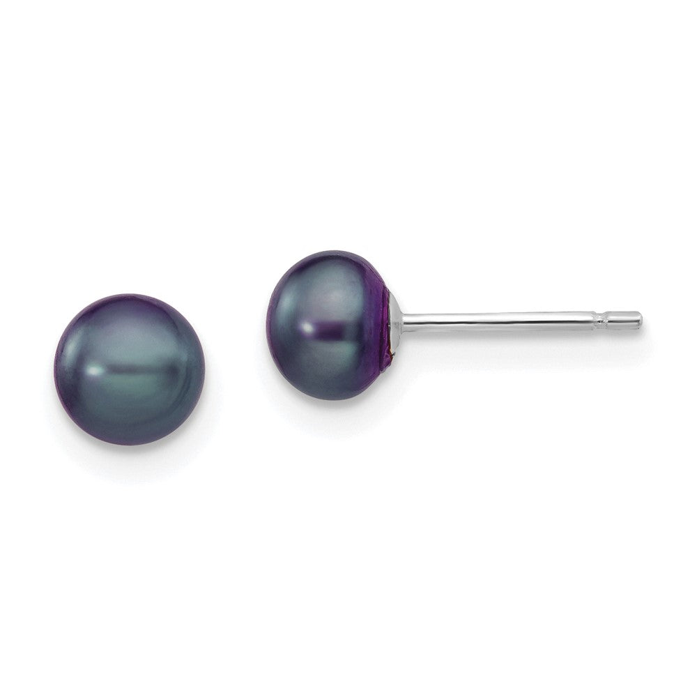 Elevate your style with the 14K White Gold 5-6mm Black Button Freshwater Cultured Pearl Stud Post Earrings. Crafted from polished 14K gold, these earrings feature striking black cultured pearls that measure 5 to 6 mm in size, adding a bold touch to any look. The die-struck design ensures durability and quality, while the rhodium plating gives a sleek shine. Perfect for women, these button earrings have a secure push-back closure for comfort. With their elegant yet simple style, the 14K White Gold 5-6mm Black Button Freshwater Cultured Pearl Stud Earrings are a versatile addition to your jewelry collection.